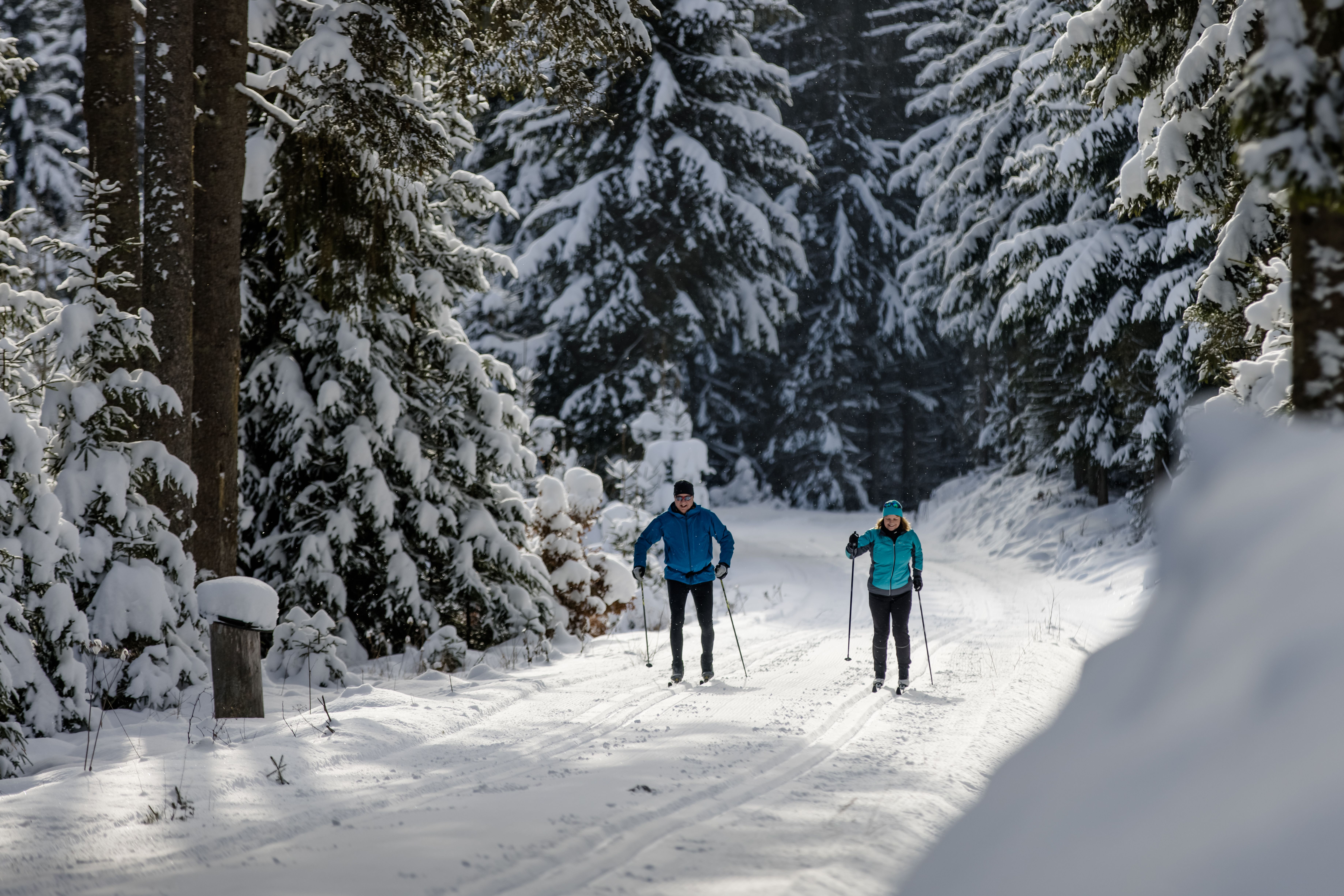 Ve waldviertelských klimatických lázních Bärnkopf vedou lehké až středně náročné běžkařské trasy lesem Weinsberger Wald, kde na vás čeká přírodní sníh, žulové balvany a vysokohorská rašeliniště.