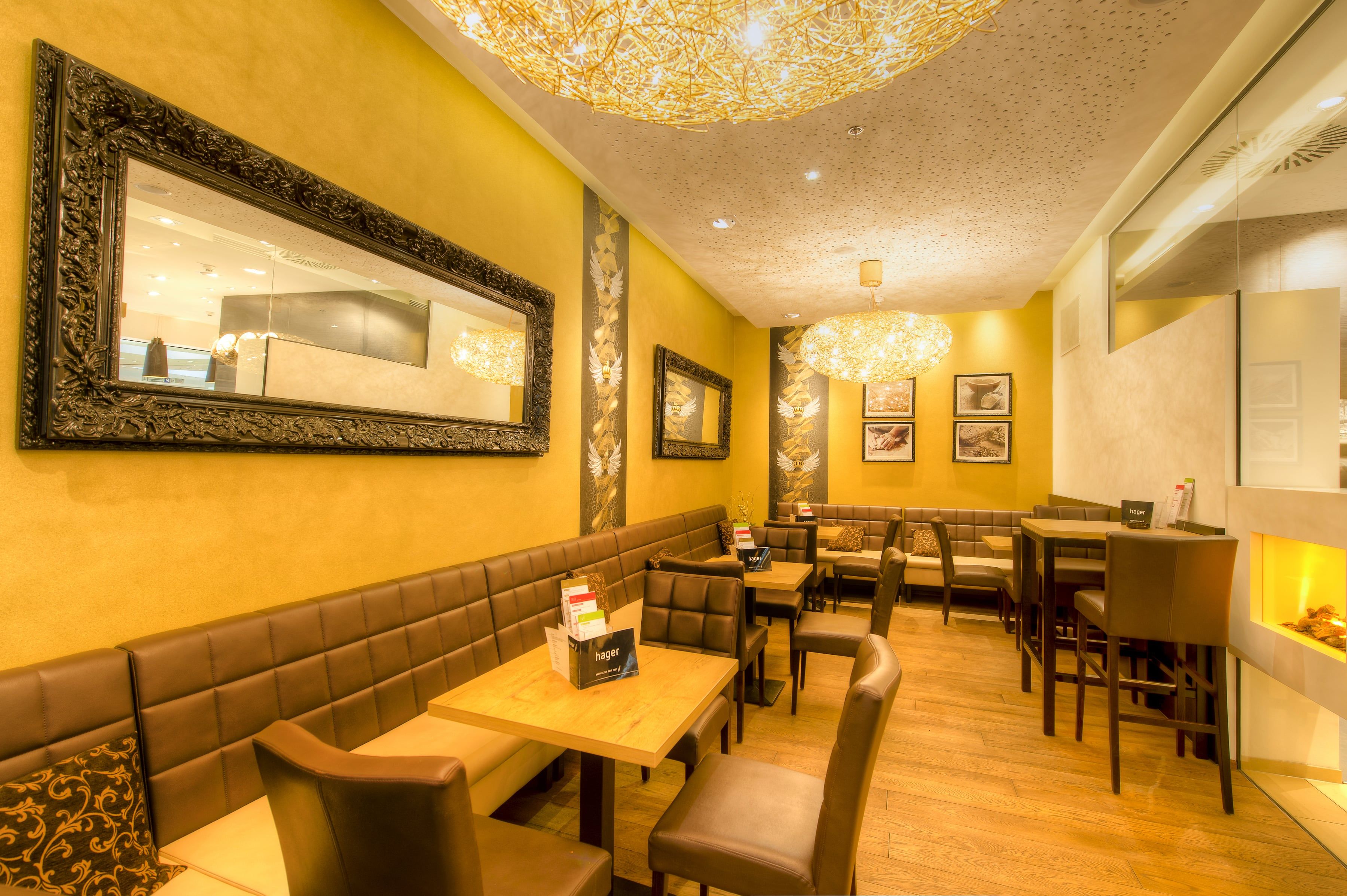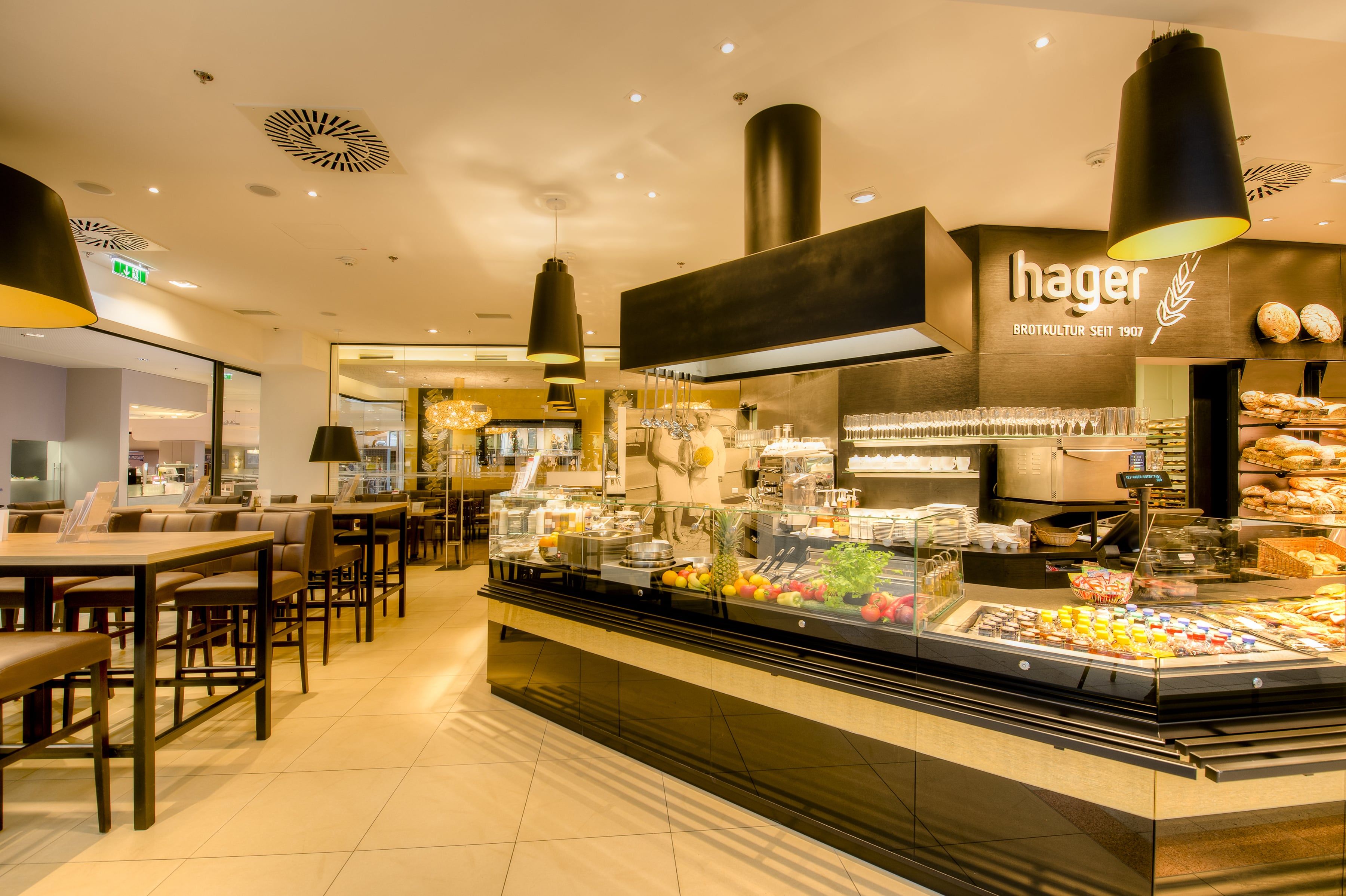 Velká, světlá pobočka tradiční pekárny Hager v Traisenparku v St. Pöltenu vás zve k příjemnému posezení u kávy v nákupním centru: s moderním a pohodlným vybavením a širokou nabídkou chleba, pečiva, zákusků a kávových variací. Hitem jsou samozřejmě snídaňové variace, které každý den odstartují obzvlášť dobře.