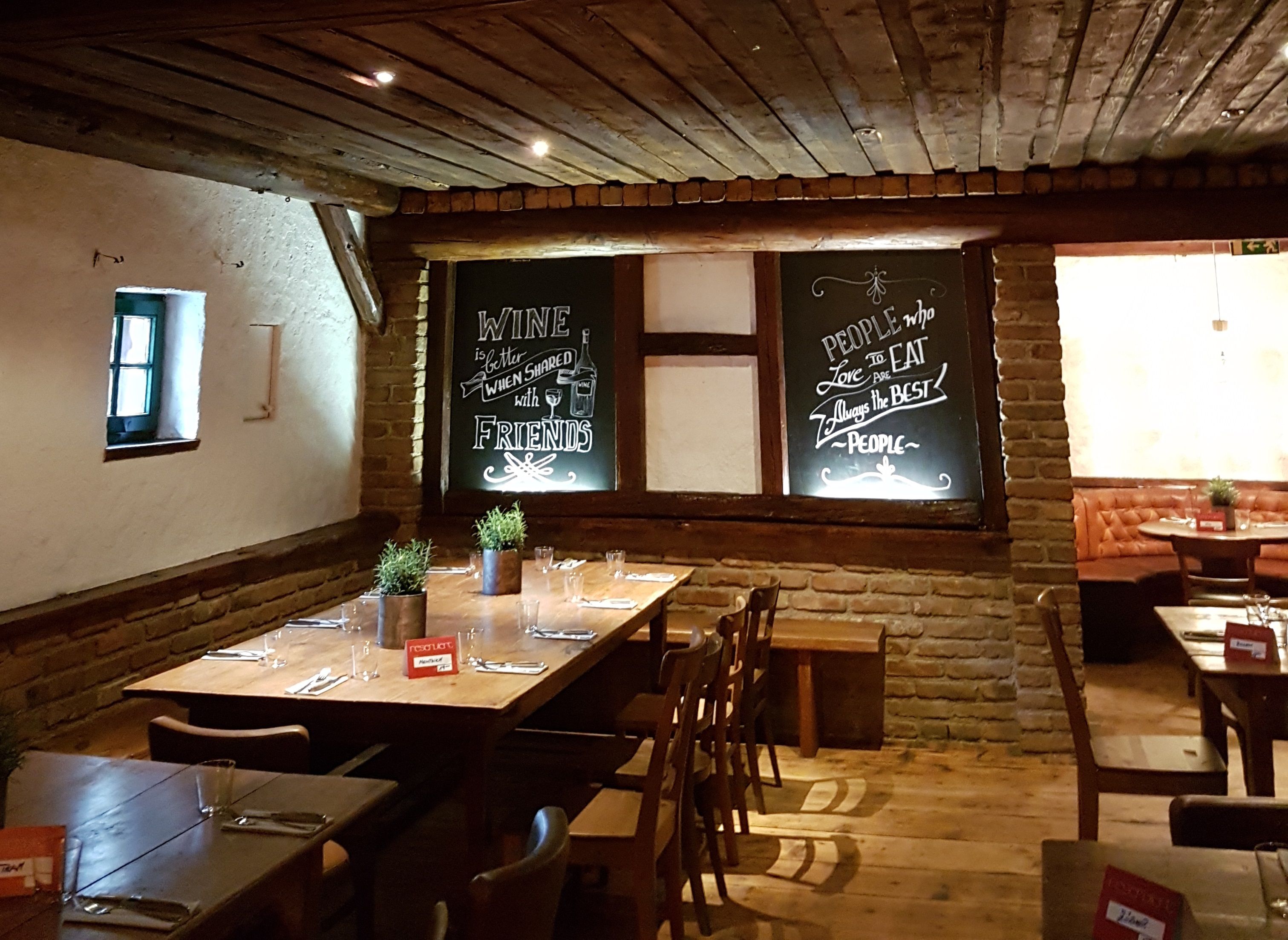 Rustikální prostředí s klidnou, atmosférickou zahradou pro hosty. Nabídka jídel sahá od steaků po burgery, sezónní pokrmy, vegetariánská a veganská jídla.