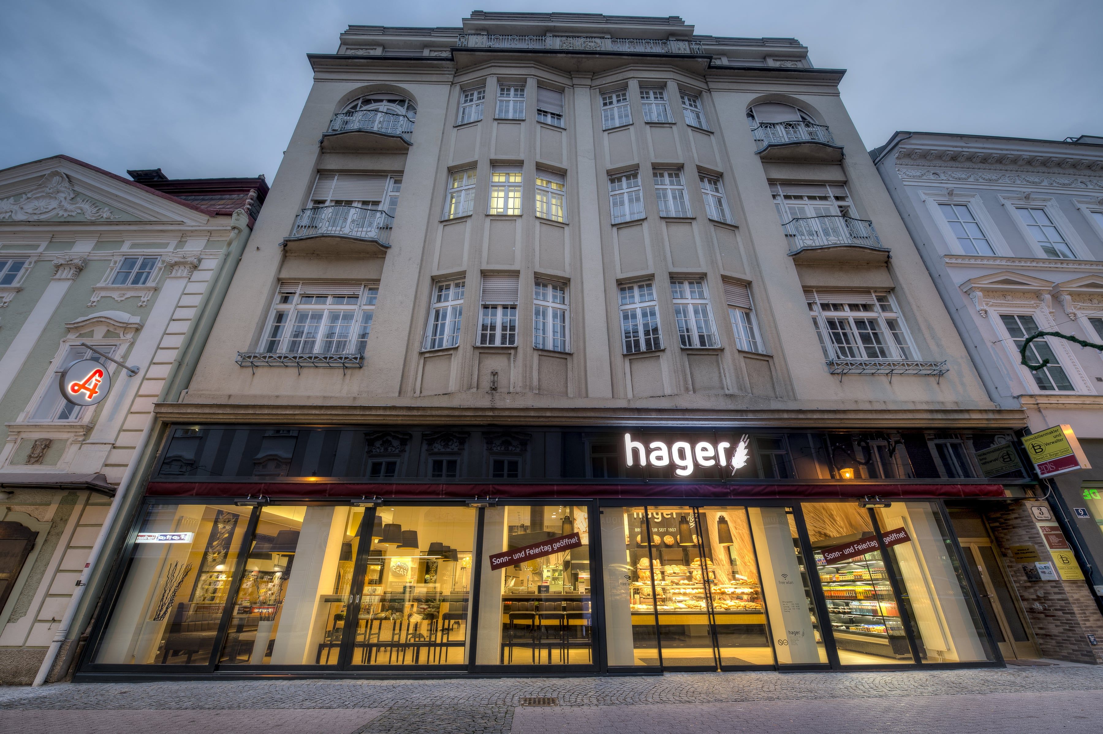 Kavárna Hager uprostřed starého města St. Pölten láká k příjemné zastávce. V prostorné kavárně