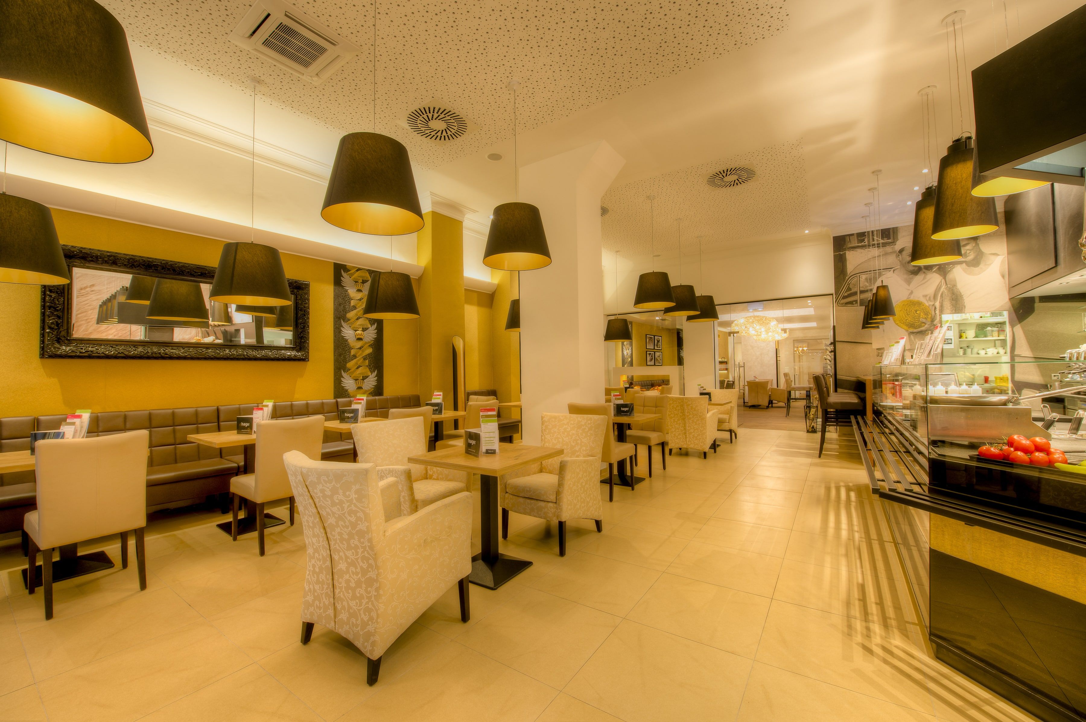 nabízí ručně vyráběné pečivo a cukrářské speciality, různé druhy kávy, snídaně od malých po velké a občerstvení pro hladové. Krásné prosklené panorama mezitím nabízí výhled na lidi procházející se po rušné pěší zóně.