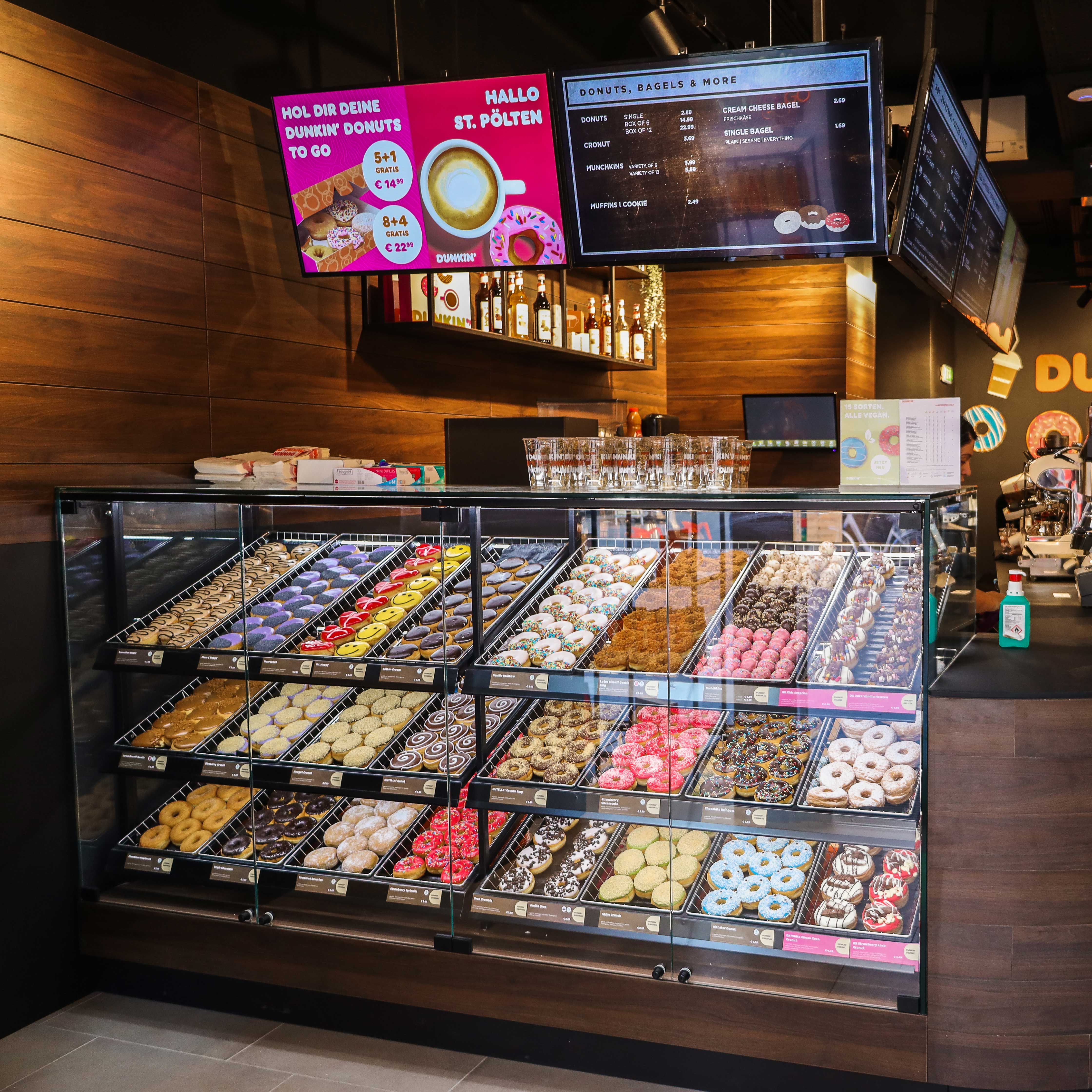 Nejoblíbenější koblihy na světě jsou konečně k dostání i v Sankt Pöltenu - v "Dunkin' Donuts" v Kremser Gasse. K dostání jsou také ve veganské verzi. V nabídce je také nejlepší Fairtrade káva. Mimochodem: lahodné zákusky vám na požádání dovezou i domů.