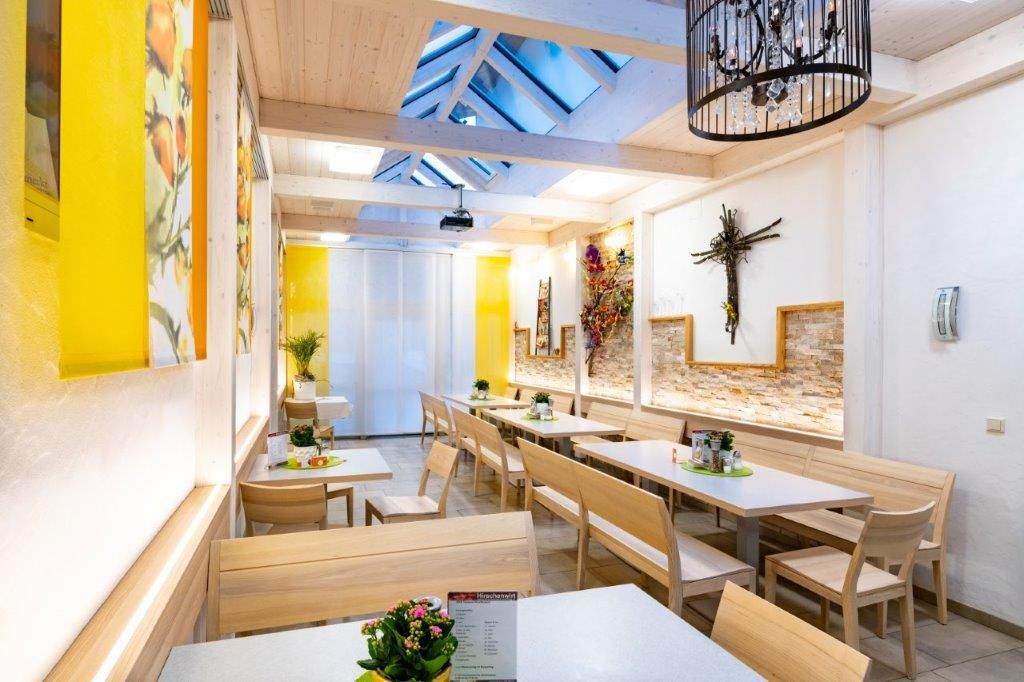 Gasthof Hirschenwirt je poctivý hostinec, kde se scházejí štamgasti, autobusové zájezdy, výletníci i milovníci vydatné hostinské kuchyně, aby si společně vychutnali dobré jídlo. Farmářské smažené kuřátko je na jídelním lístku právem označeno jako „legendární“. Mezi poctivými specialitami nechybí plíčkya, hovězí guláš ani šťavnatá žebírka, jež nabídku skvěle doplňují. Obsluha je přátelská a svižná – a také musí být, zejména při oslavách ve velkoryse pojatém společenském sále, kde jsou tyto vlastnosti nezbytné. Intimnější a rodinnější atmosféru poskytuje zimní zahrada. Vlastní prodejna hostince pak představuje speciality podniku, v jejichž centru stojí hlavní symbol domu: šípek.