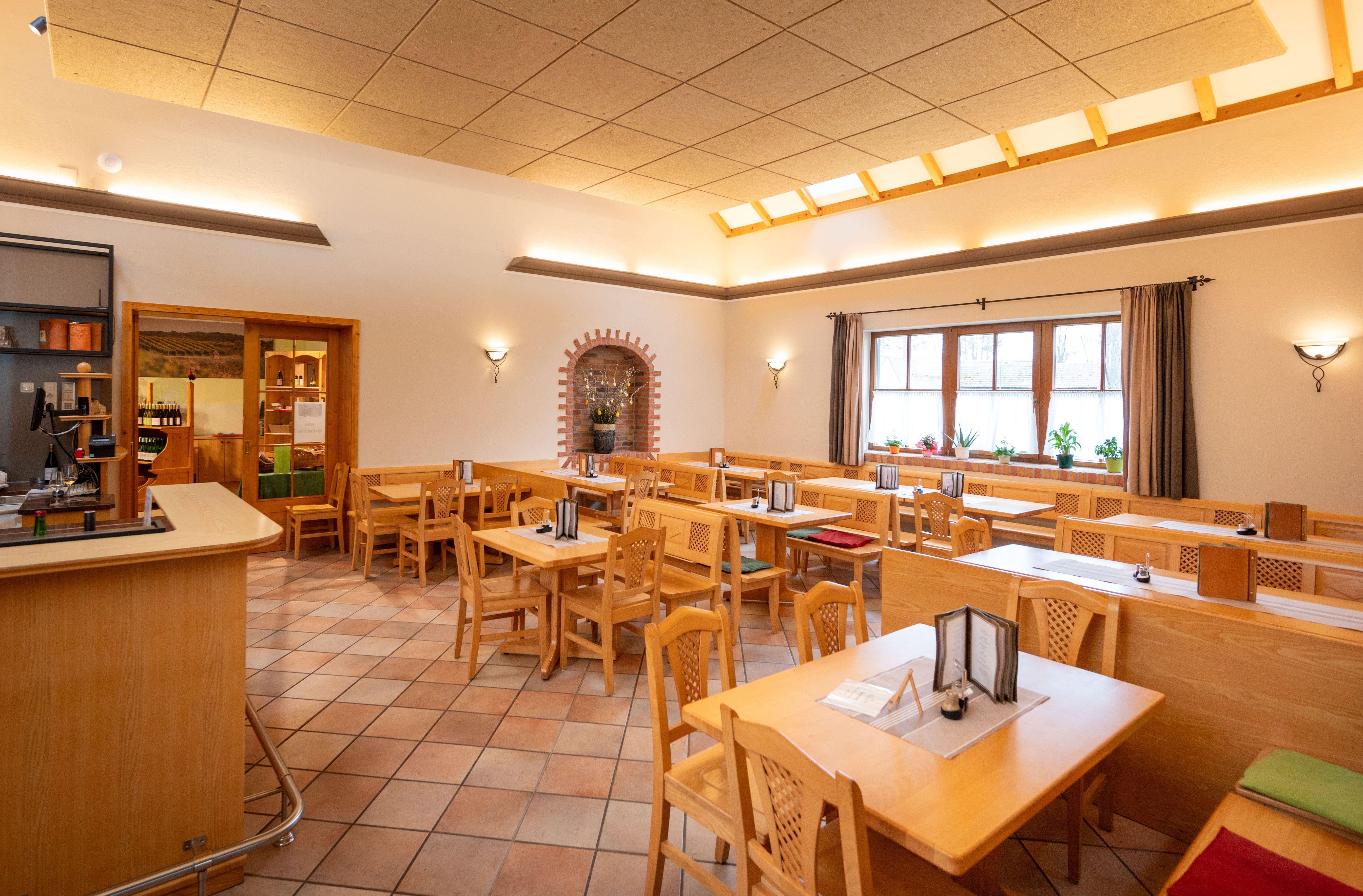Hned vedle farmářské prodejny zve k posezení heuriger. Zde si můžete v útulné atmosféře vychutnat domácí pochoutky - za doprovodu vůně čerstvě vyuzeného masa a tichého chrochtání spokojených prasat ve chlévě. Místo, kde se zvláštním způsobem snoubí požitek, příroda a pohostinnost.