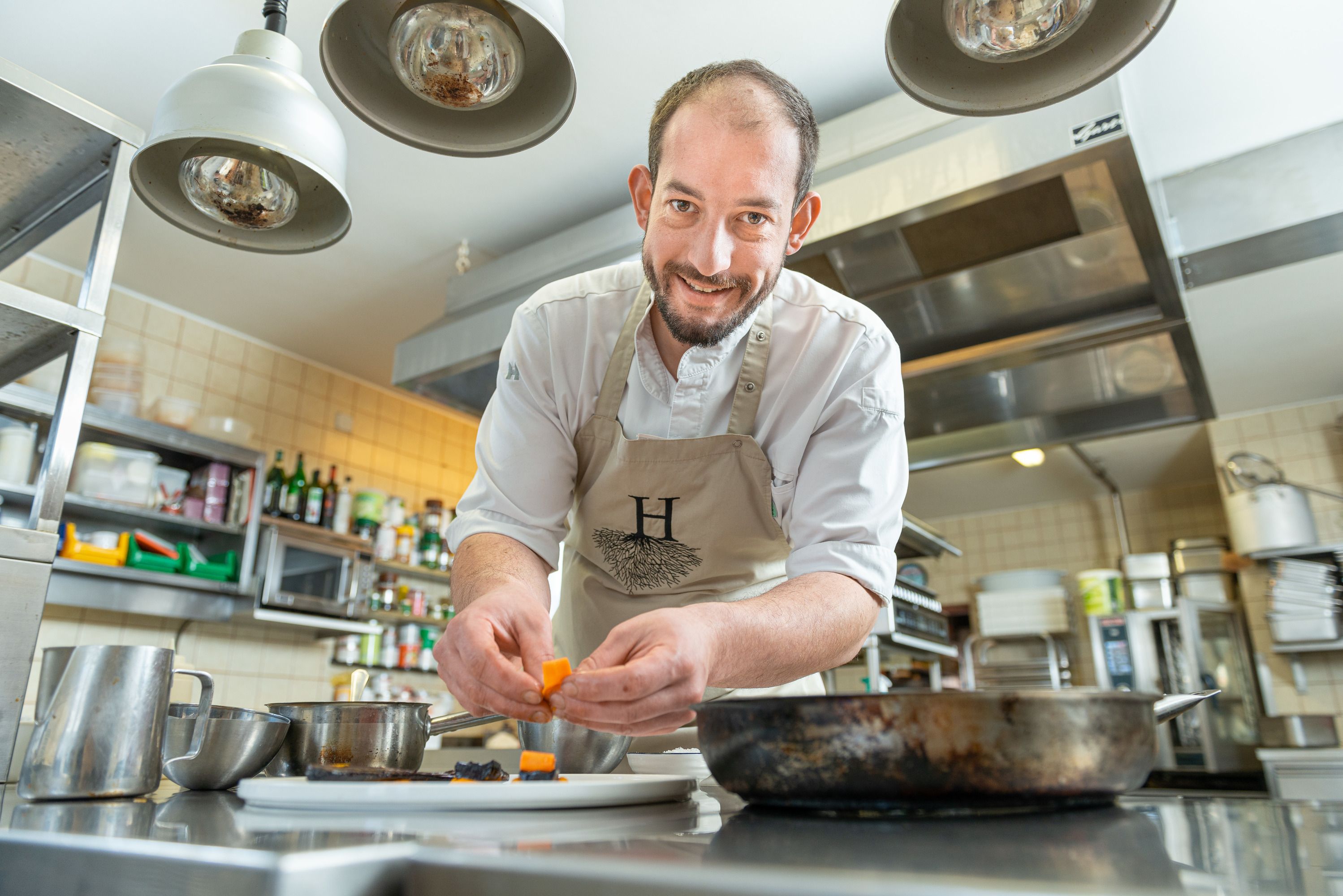 Už první dojem napoví, co pohled do jídelního lístku potvrdí: Gasthof Hueber v obci St. Georgen an der Leys je pevně zakotvený a zakořeněný v regionu. Výmluvným symbolem je výrazné logo na fasádě – kořenová nádhera prorůstající hluboko do země. Samotná restaurace působí po moderní a nadčasové rekonstrukci svěže, přesto si uchovala osobní rukopis rodiny Hueber. Pokrmy, které připravuje šéfkuchař Stefan Hueber, vykonávají funkci kulturní mediátora. Stefan Hueber se spolu se svou ženou Silvií stará o excelentní kulinářské zážitky. Na talíři se objevují špičkové produkty – pstruh ze Scheibbsu, bründelská brýlová ovce, zvěřina i bylinky z okolních lesů. Prostor tu dostává také náročná bezmasá kuchyně a řemeslo fermentace. Mrkev, ředkvičky a další zelenina pak pocházejí z vlastní zeleninové zahrádky.