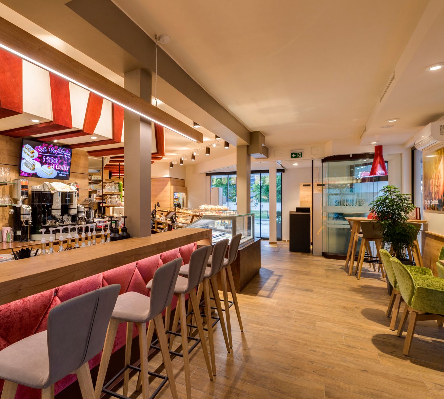 Naša priestraná kaviareň očarí svojím moderným prostredím a pri peknom počasí si môžete vychutnať výborné raňajky, čerstvo uvarenú kávu alebo naše domáce Koll zmrzlinu v priestrannej záhrade!