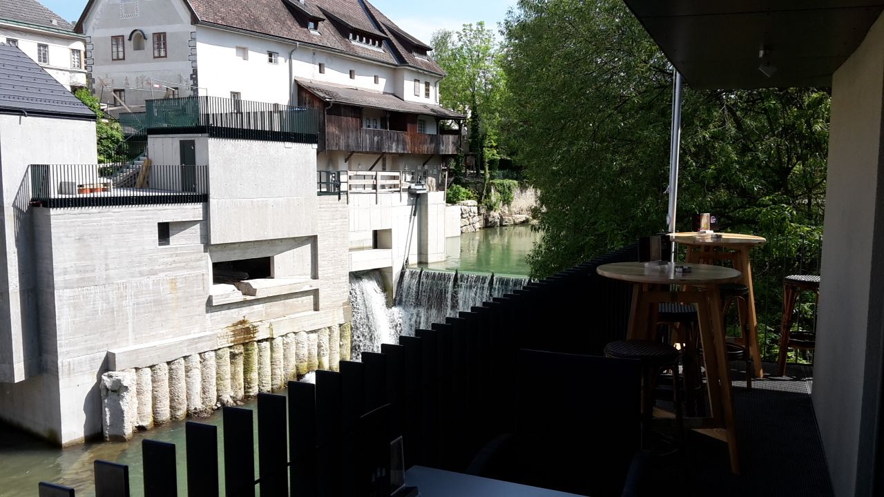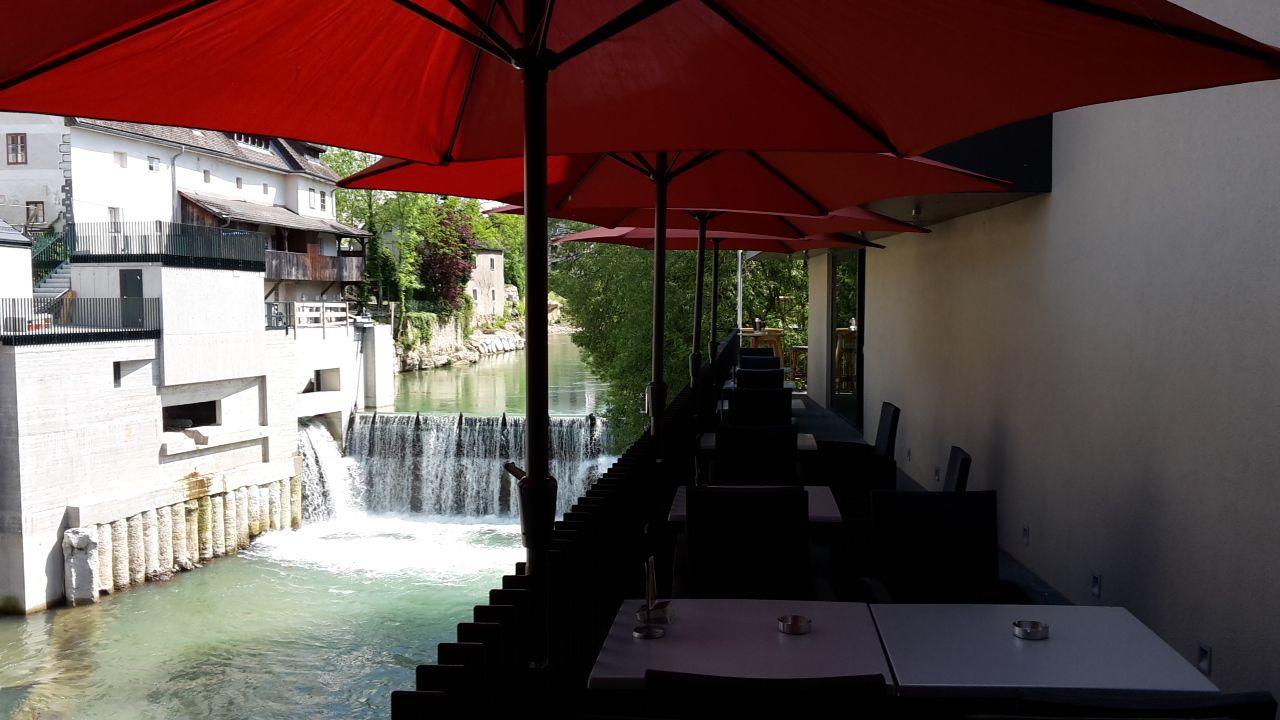 První pohled z La Terrassa v Purgstallu do hlubin odhalí několik metrů široký Erlauf se zelenomodře až tyrkysově zbarvenou vodou, lemovaný z obou stran skalami, které se ztrácejí pod hustým zeleným šatem stromů.