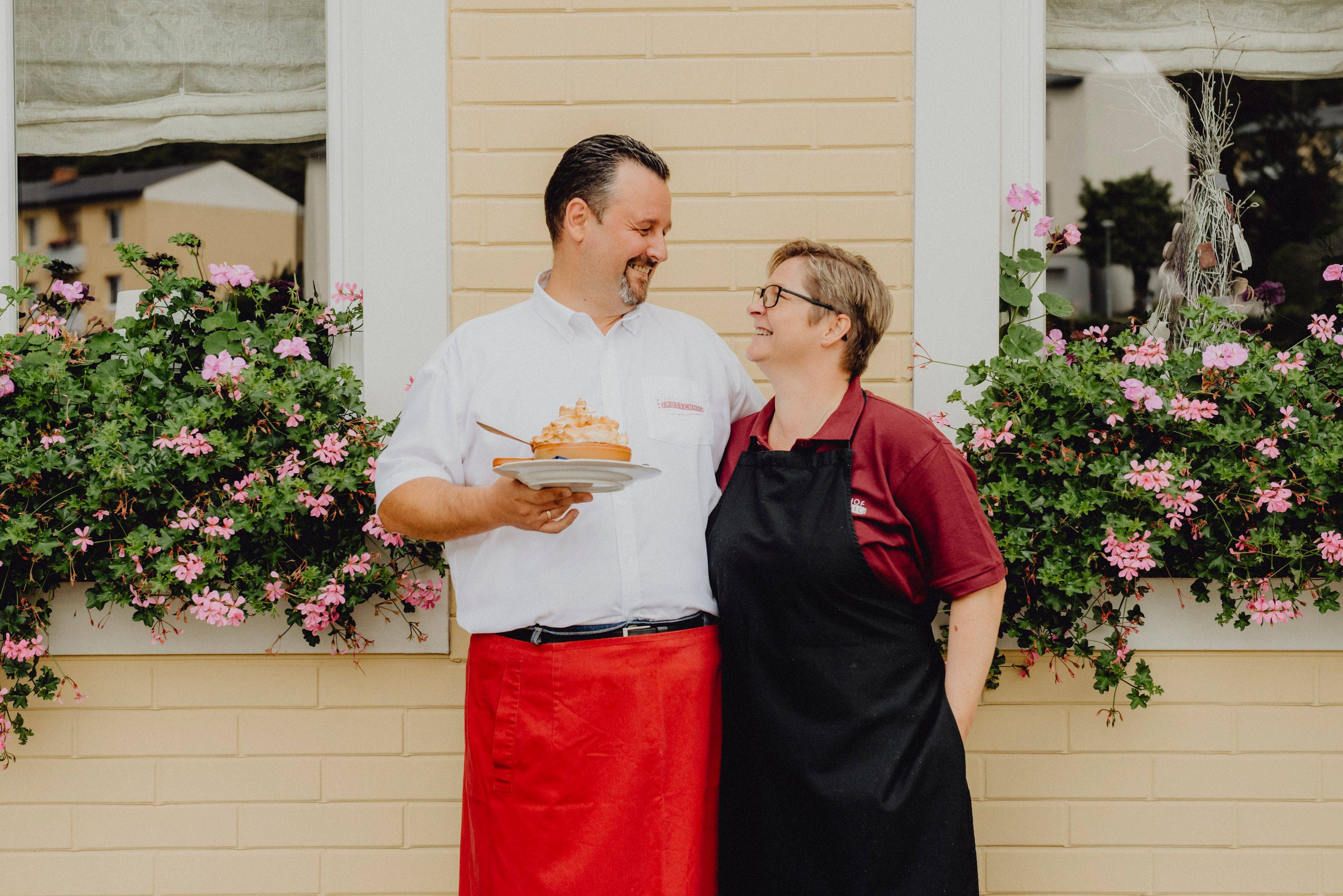 The municipality of Höflein is often referred to as a scenic gem. On the edge of the Steinfeld, it is nestled in the foothills of the Schneeberg at the foot of the Hohe Wand, making it a popular starting point for guests exploring the Vienna Alps in Lower Austria on a hike or bike tour. From a culinary point of view, too, you should definitely give this region a chance. Since 2009, the Landgasthof Jautschnig has been catering to the tastes of locals and day-trippers with home-style cooking. The two landlords Elisabeth and Thomas Jautschnig are the fifth generation to run the modern establishment. Although it is called a country inn, its cuisine goes far beyond this definition.