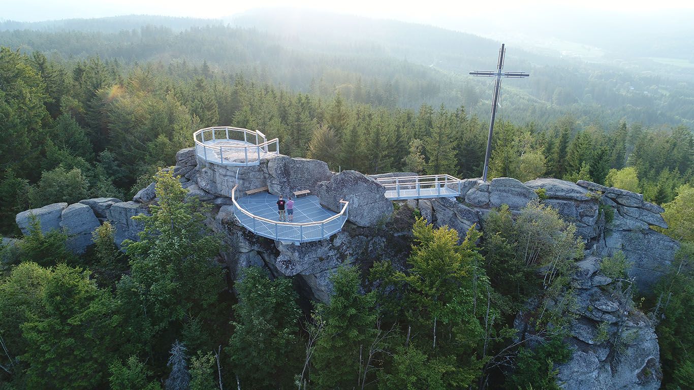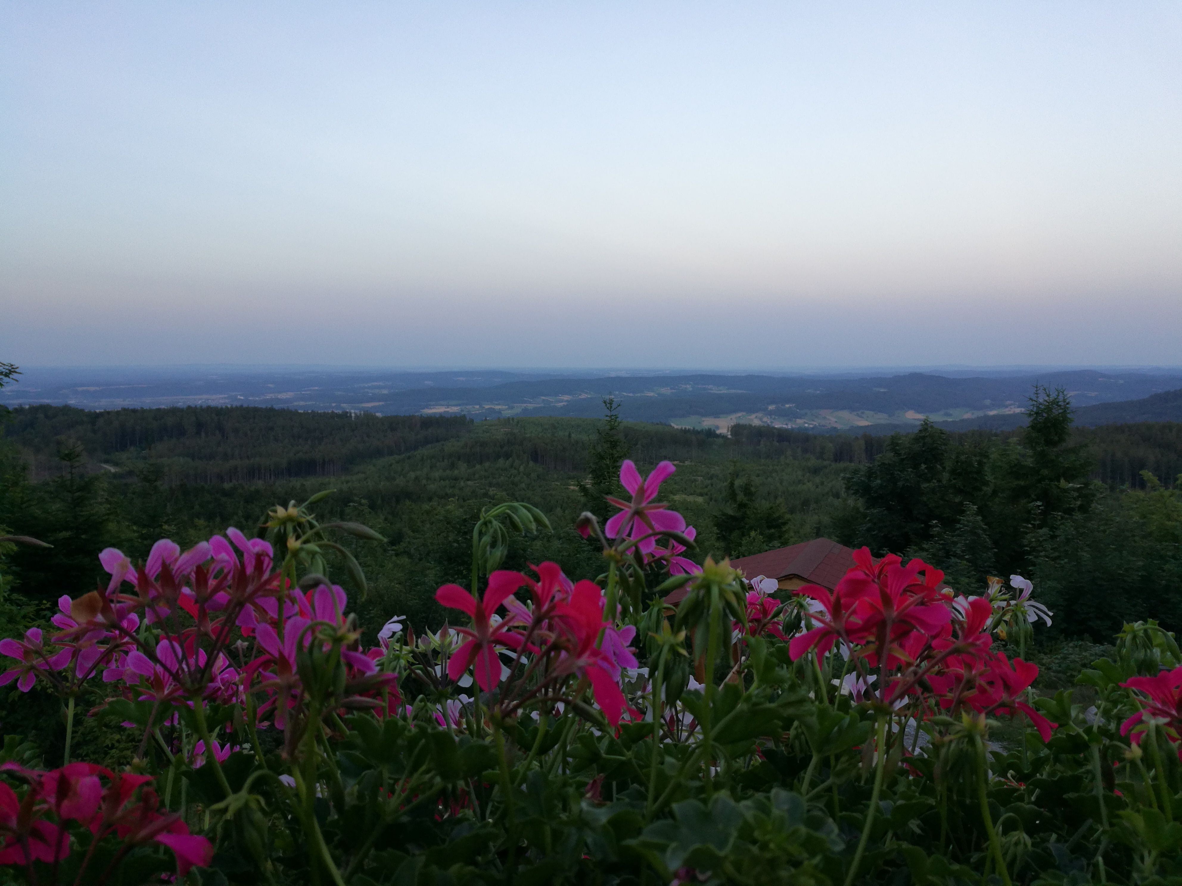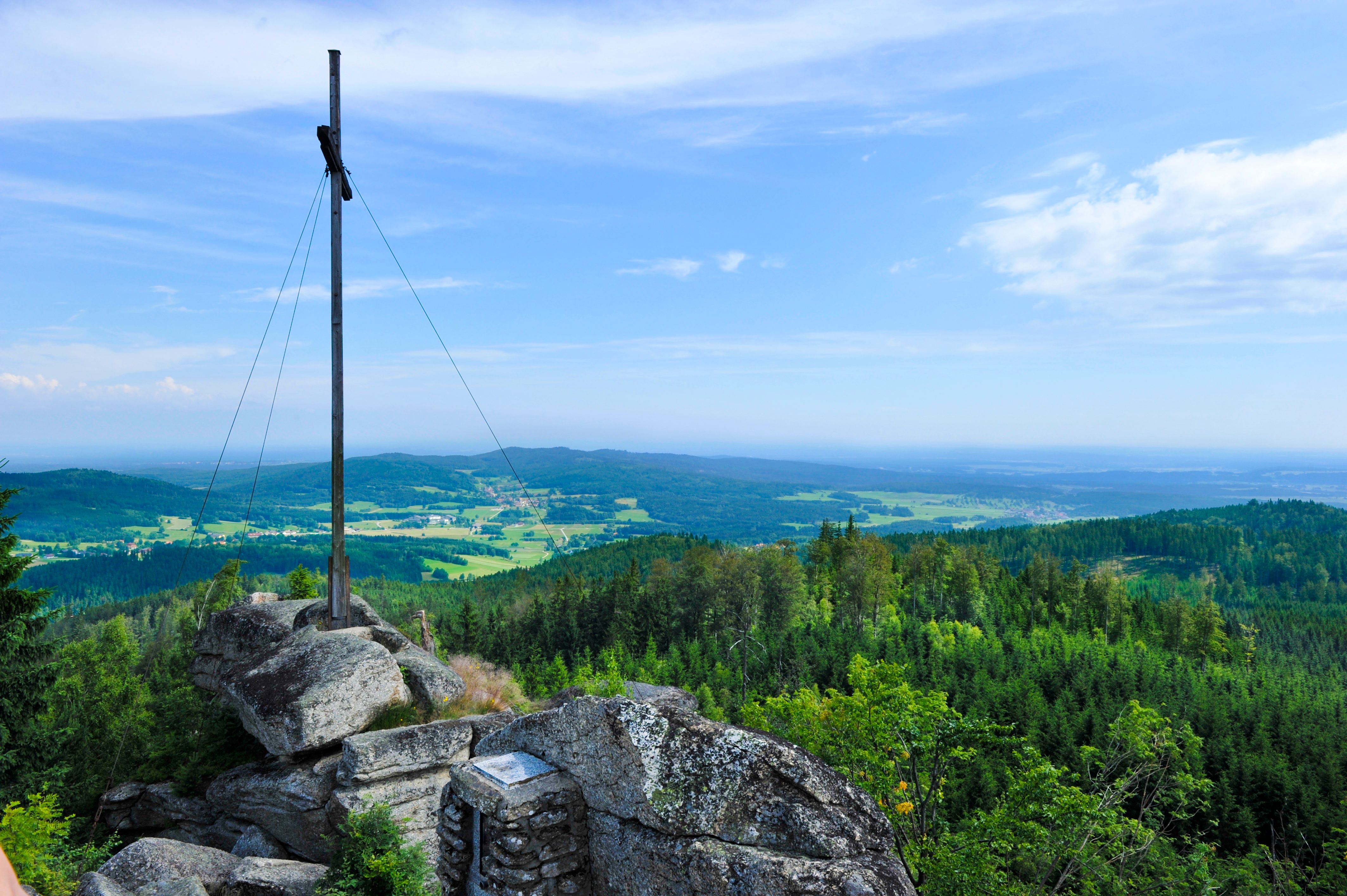 Nejen z vrcholu, ale i z terasy chaty, která je otevřena od dubna do října, se můžete kochat výhledem daleko do kraje.