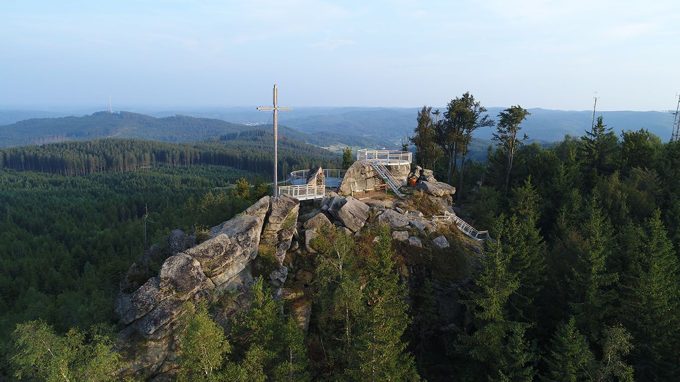 Nebelstein ( 1017 m) v Moorbad Harbachu je jednou z nejvyšších hor dolnorakouského Waldviertelu a je známý svými krásnými výhledy a skalními útvary v oblasti vrcholu. Chata Nebelsteinhütte patří waldviertelské sekci Rakouského alpského spolku ( OeAV) a nachází se na důležité křižovatce mnoha Weitwanderwegen. Koncem podzimu 1947 dali majitelé pozemků z Haus zu Fürstenberg ve Weitře souhlas s výstavbou Nebelsteinhütte a 25. listopadu 1948 se již v novinách mohli dočíst o dokončení první chaty OeAV po druhé světové válce. Různé rekonstrukce a modernizace daly chatě její současnou podobu.