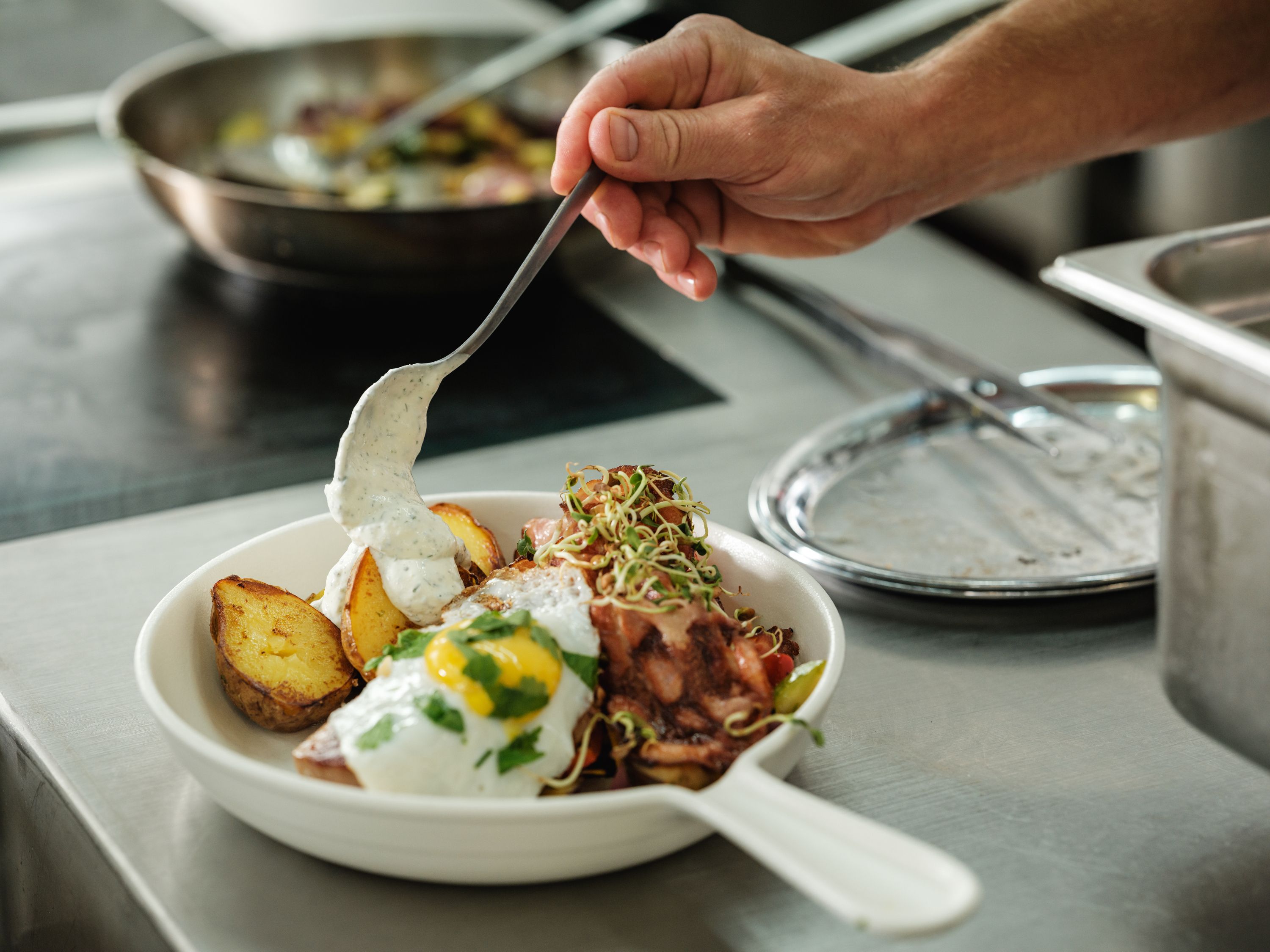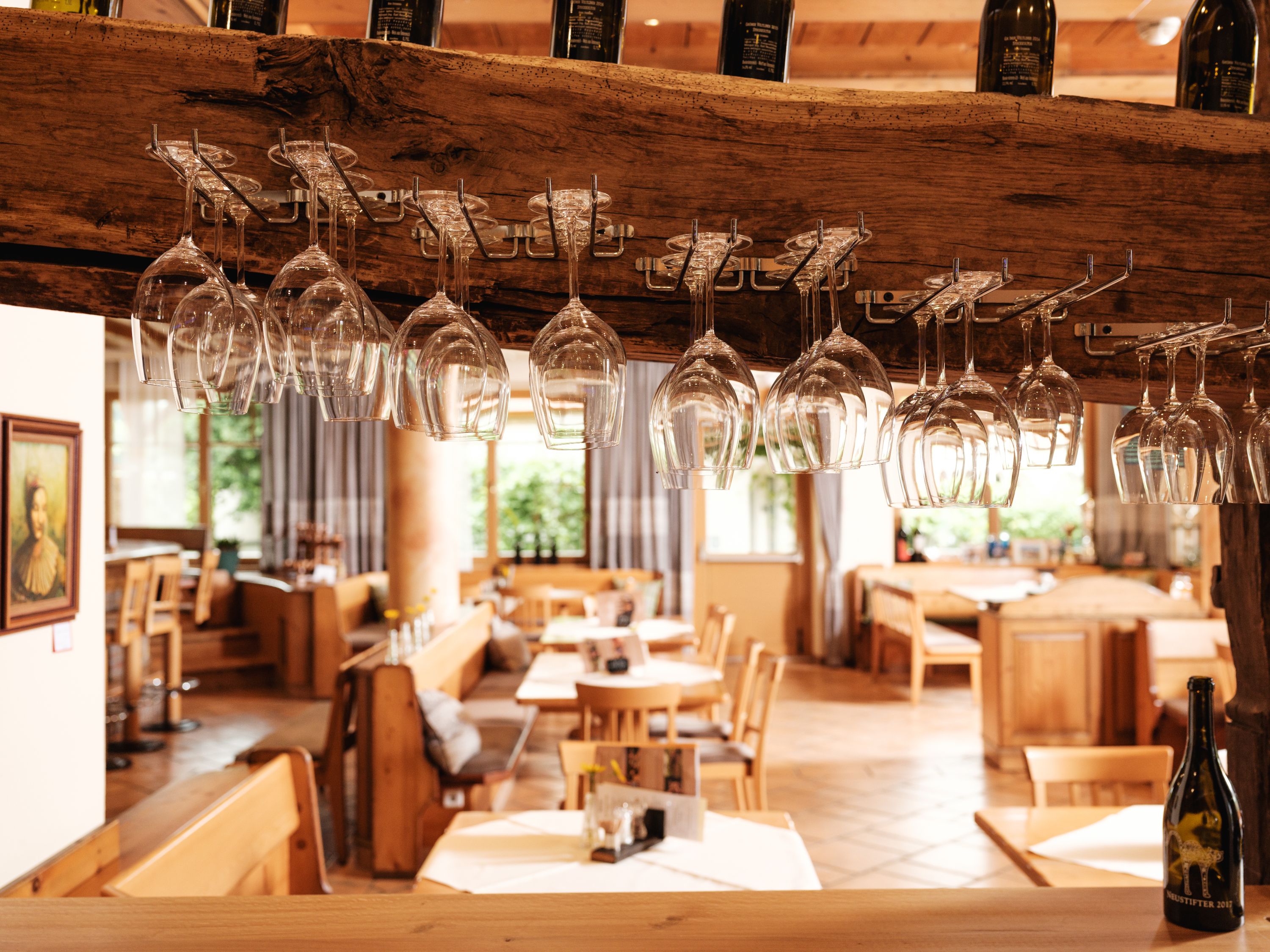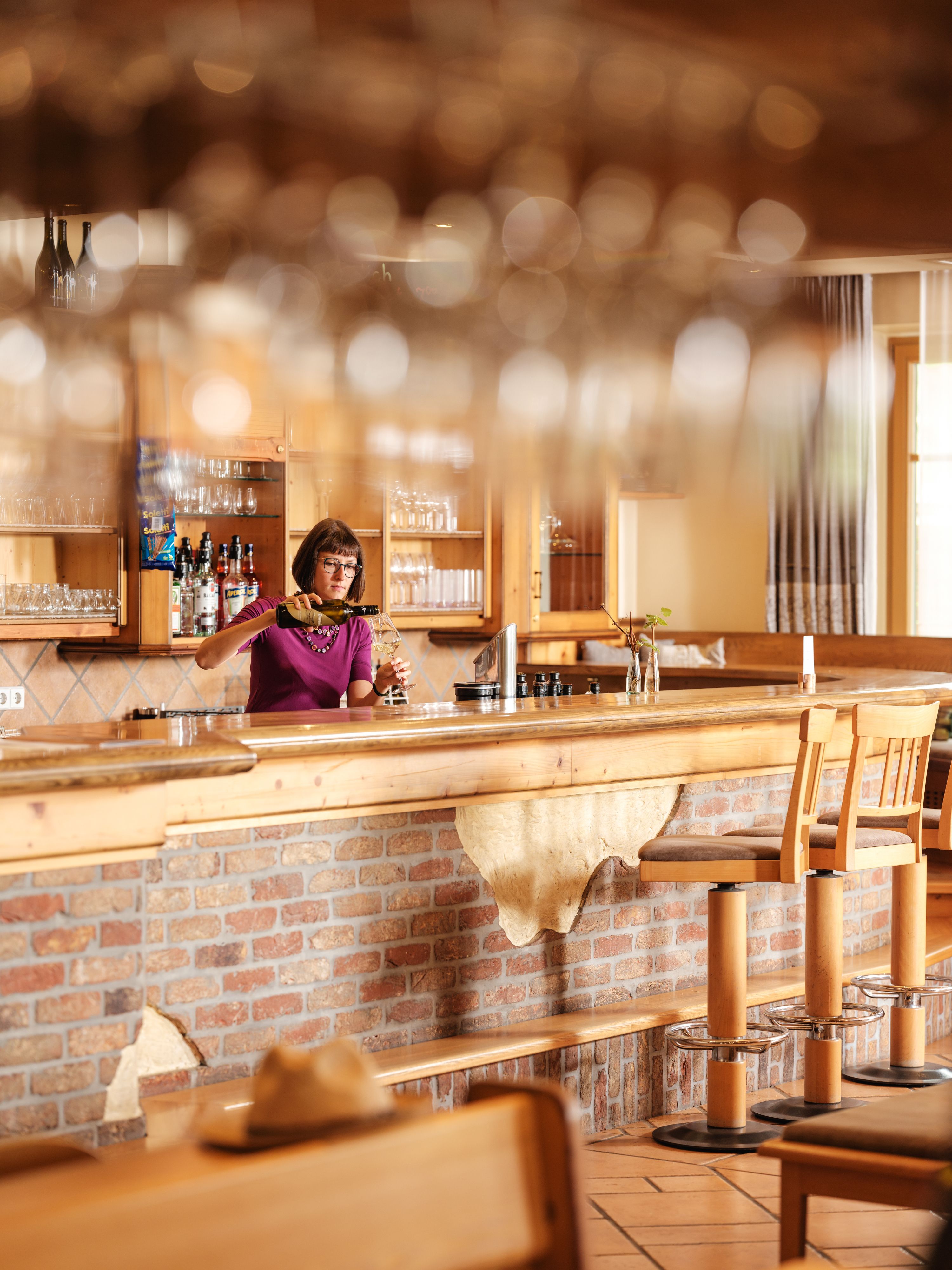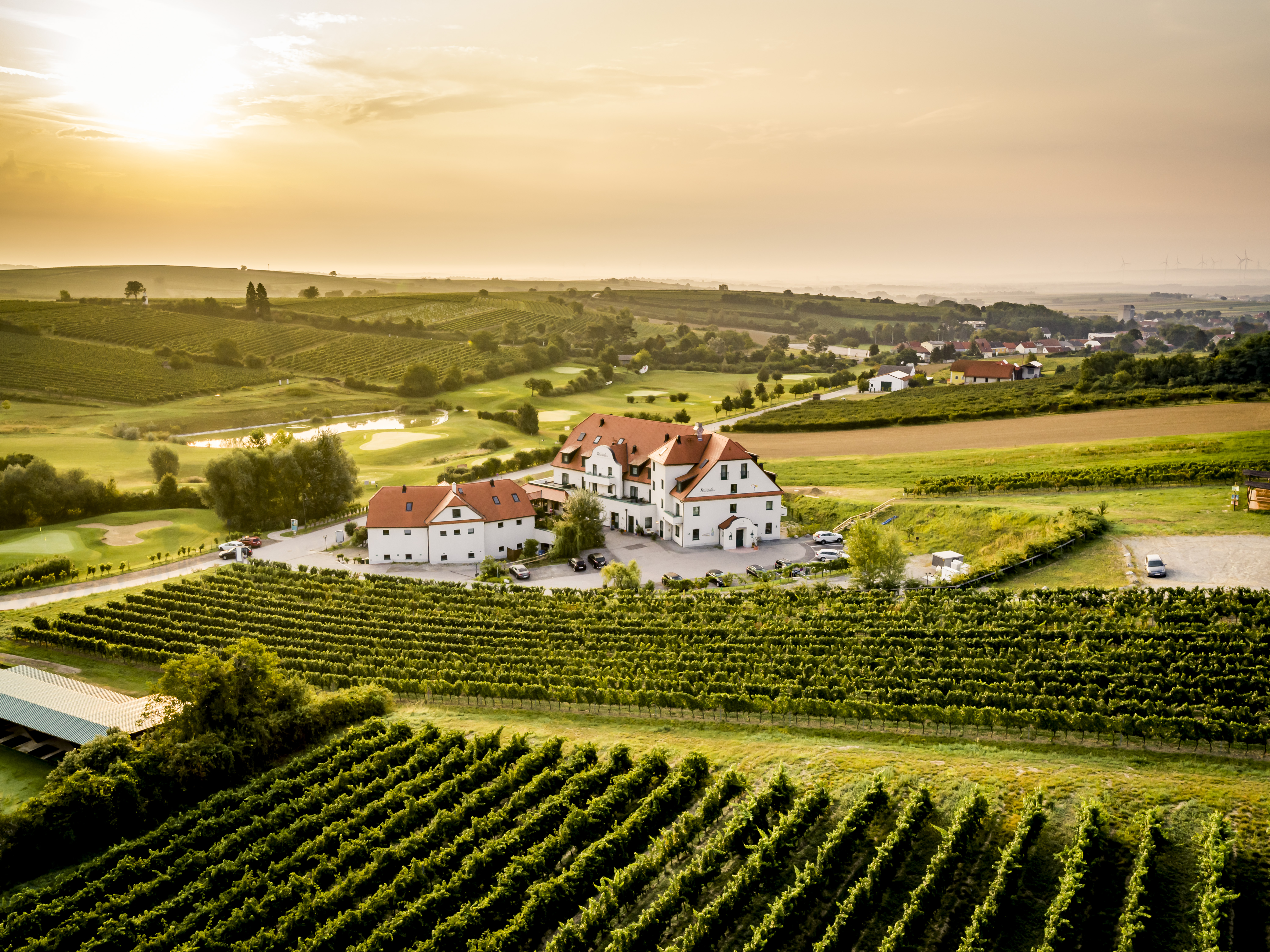 Nechte se rozmazlovat v naší útulné restauraci nebo na terase s výhledem na vinice a zelené golfové hřiště. Velký důraz klademe na regionální dodavatele a sezónní produkty v té nejlepší BIO kvalitě. Kulinářská nabídka se cíleně zaměřuje na regionální a sezónní produkty. Samozřejmě nezapomínáme ani na tradiční pokrmy, jako jsou řízky, hovězí roštěná se smaženou cibulkou nebo speciality z weinviertelské zvěřiny. Odpoledne si můžete dát kávu a dezert nebo ochutnat víno z bohatého sortimentu našeho vinařství. Hlavní důraz je zde jednoznačně kladen na odrůdu Grüner Veltliner, ale na své si přijdou i milovníci červených vín. Pokud hledáte opravdový gurmánský zážitek, doporučujeme vinné párování s našimi pokrmy. Oblíbená jsou zejména degustační menu s vinným párováním a pravidelné nedělní tematické brunche. Ve vinotéce najdete všechna naše vína, která si můžete také odnést domů.