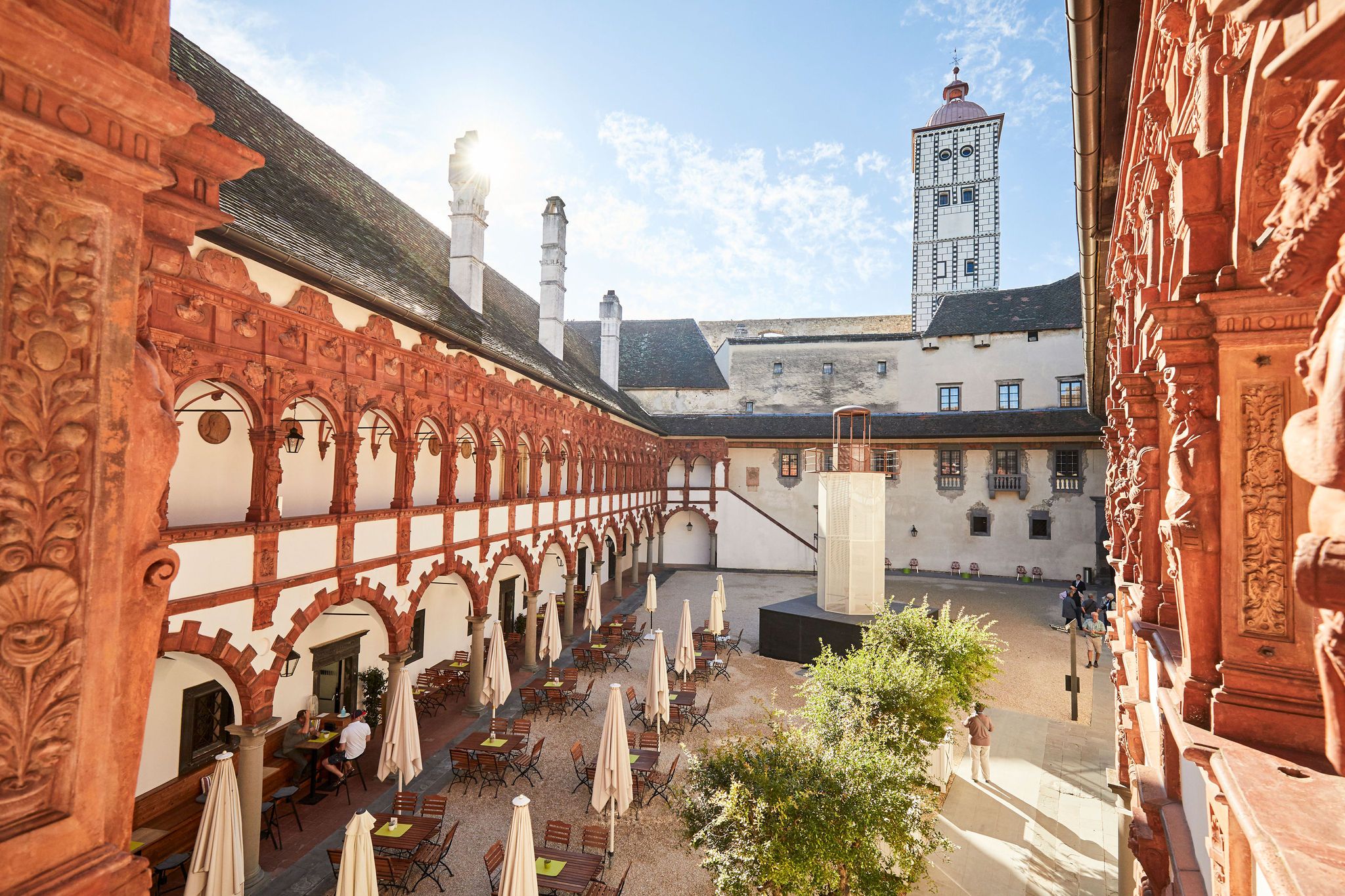 Výstava a restaurace na zámku Schallaburg jsou jedno a totéž: v zahradě pro hosty uprostřed nejkrásnějšího terakotového nádvoří na sever od Alp si můžete vychutnat jedinečnou atmosféru a zároveň ochutnat tradiční rakouskou kuchyni se sezónními pochoutkami, zákusky a zmrzlinovými kreacemi.