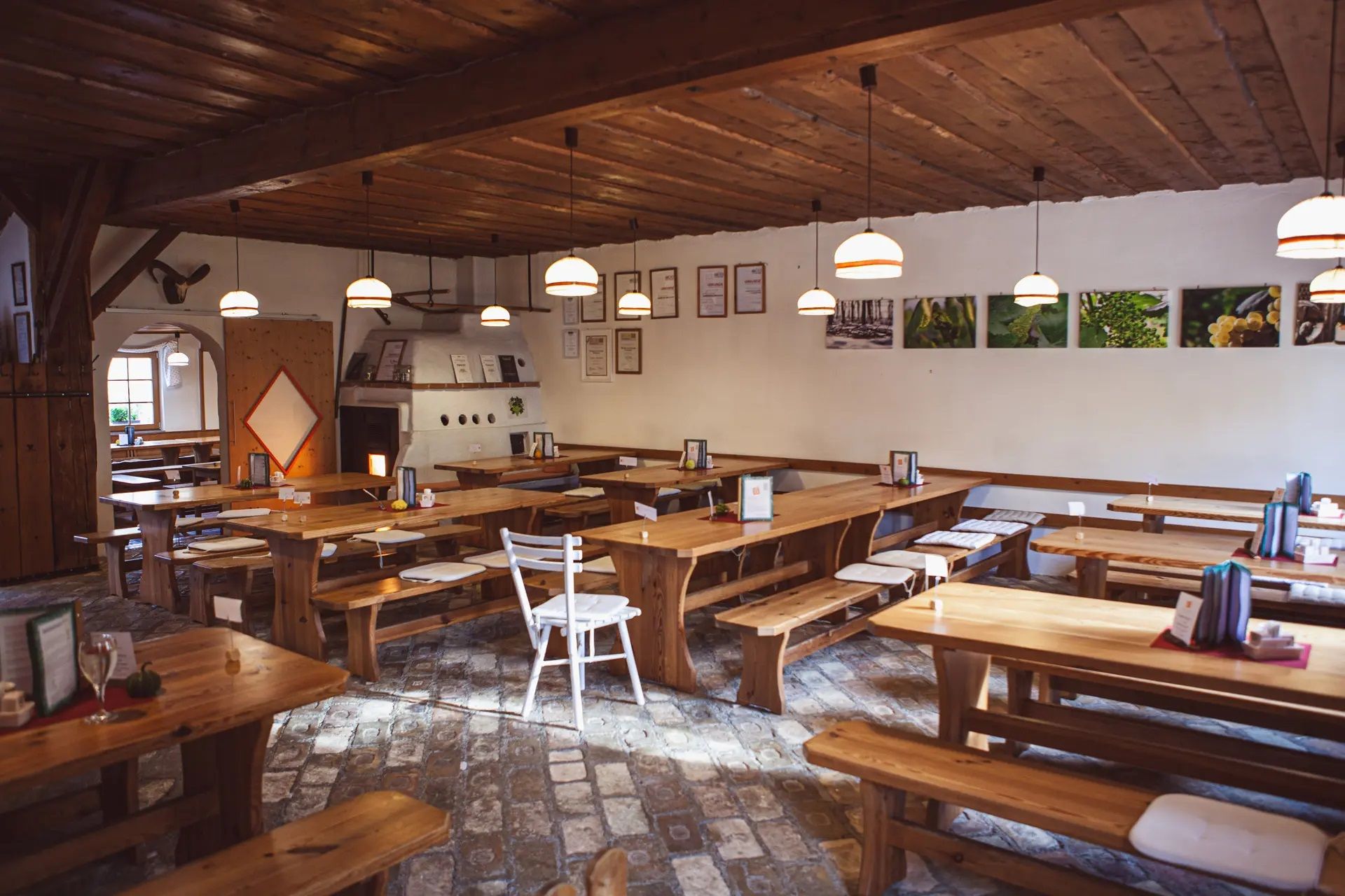 Heuriger Buchecker nabízí požitek na přízemní úrovni: v rustikálním salonu si můžete vychutnat klasickou heurigenskou kuchyni a speciality rodiny, jako jsou pokrmy ze zvěřiny z vlastní produkce. Pokud si chcete posedět venku, v teplých dnech je k dispozici slunná zahrada, zatímco v zimě vytvářejí útulnou atmosféru uvnitř velká kachlová kamna.