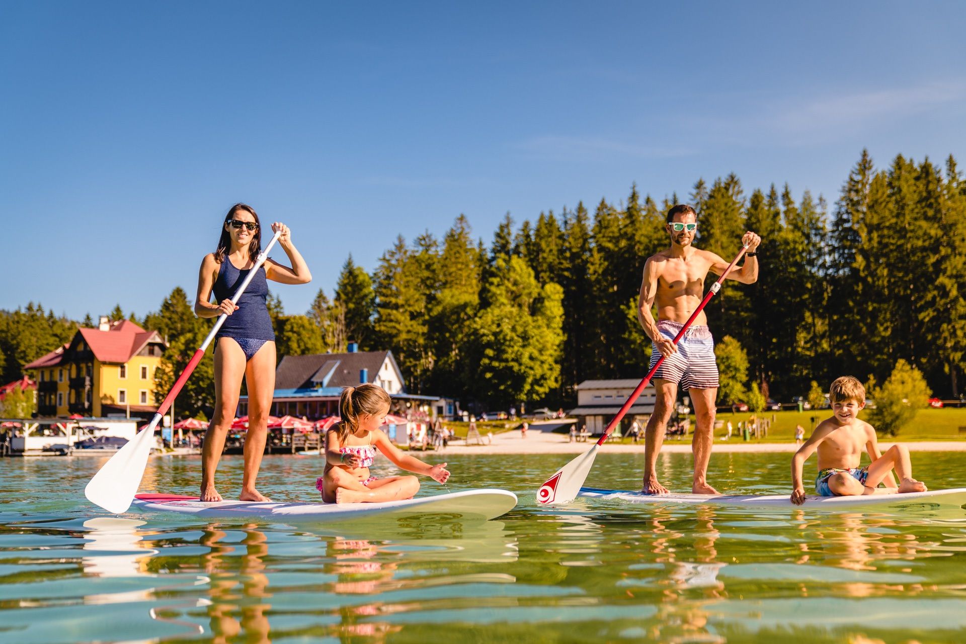 Nechte se pohupovat na vlnách a vychutnávejte si majestátní okolí. K dispozici jsou také 2 párty čluny pro 7 a 8 osob a pádla na stojáka k zapůjčení.