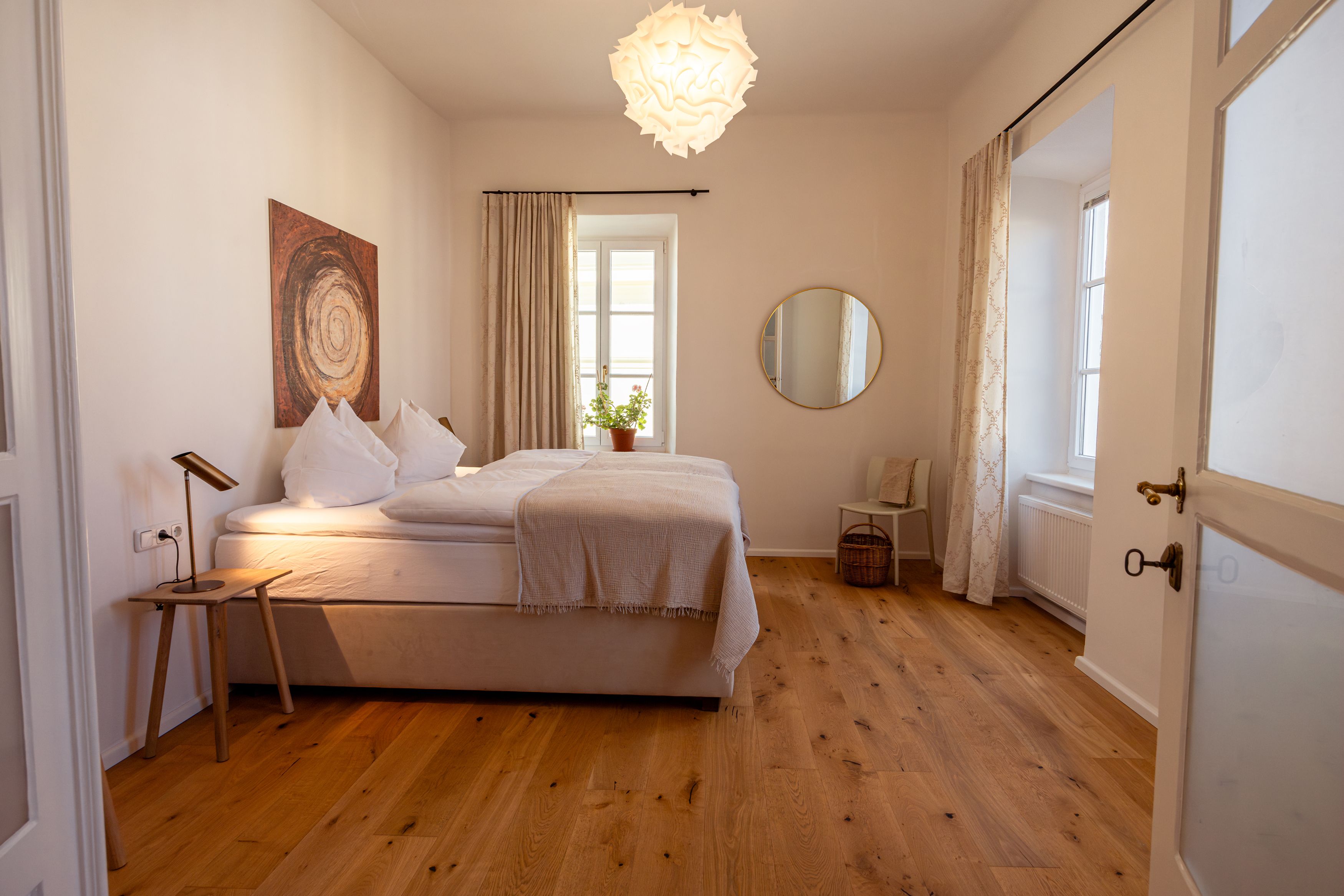 Ryzí venkovská romantika! Překrásně situovaný měšťanský dům starý více než 500 let prošel citlivou rekonstrukcí. Jednoduché pokoje zařízené vkusně a s charakterem, zelený dvorek s velkým kamenným stolem, zahrádka mezi mladými ovocnými stromy a starou bříza u historických městských hradeb. To vše vytváří kouzelné místo, které si můžete zarezervovat samostatně, nebo celý objekt s přáteli či rodinou. Vaří se tu z regionálních surovin podle sezóny, jednoduše a se vkusem. A protože je tady všechno něčím výjimečné, není divu, že se v klenbách bývalé koňské stáje ukrývá dokonce soukromé kino.