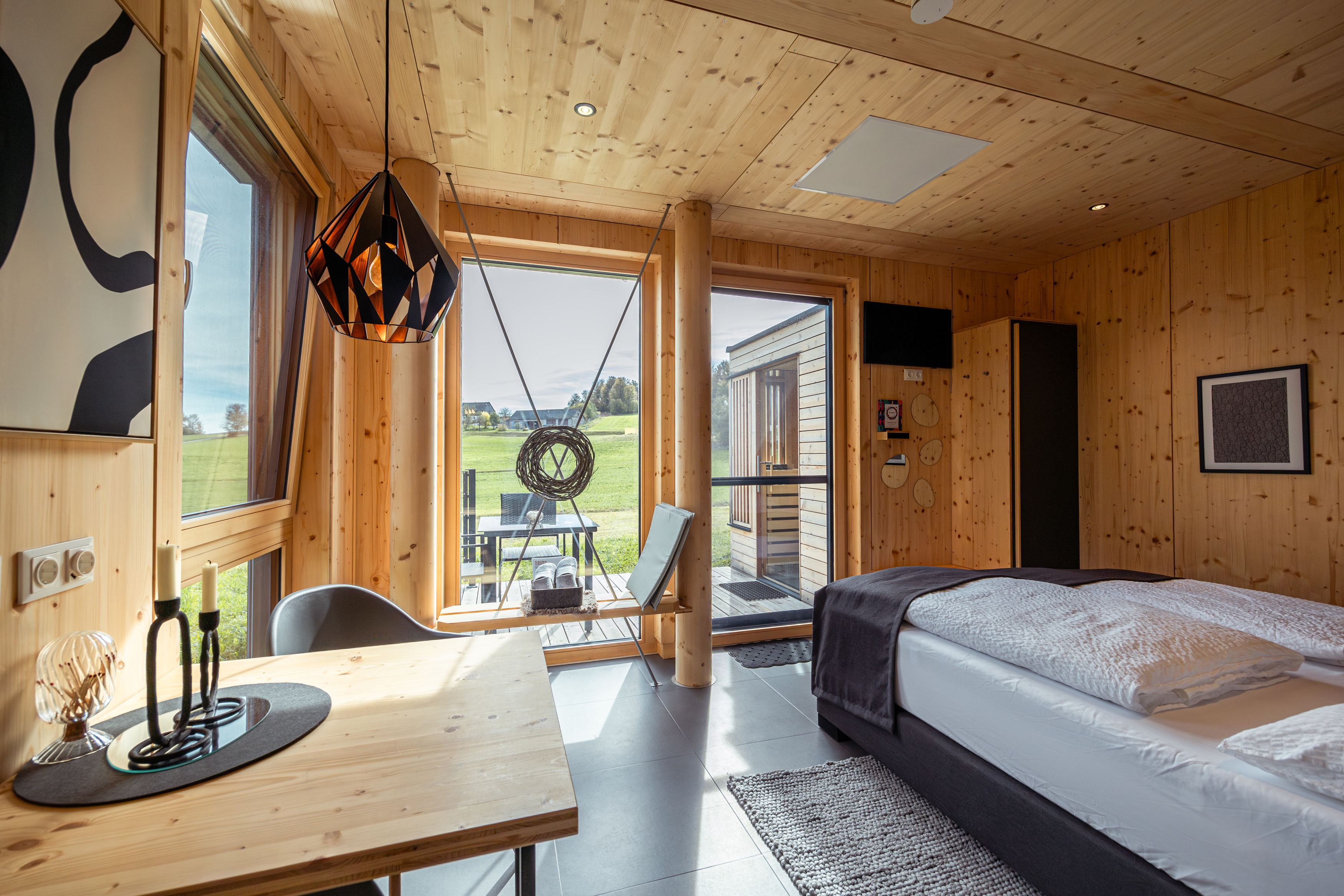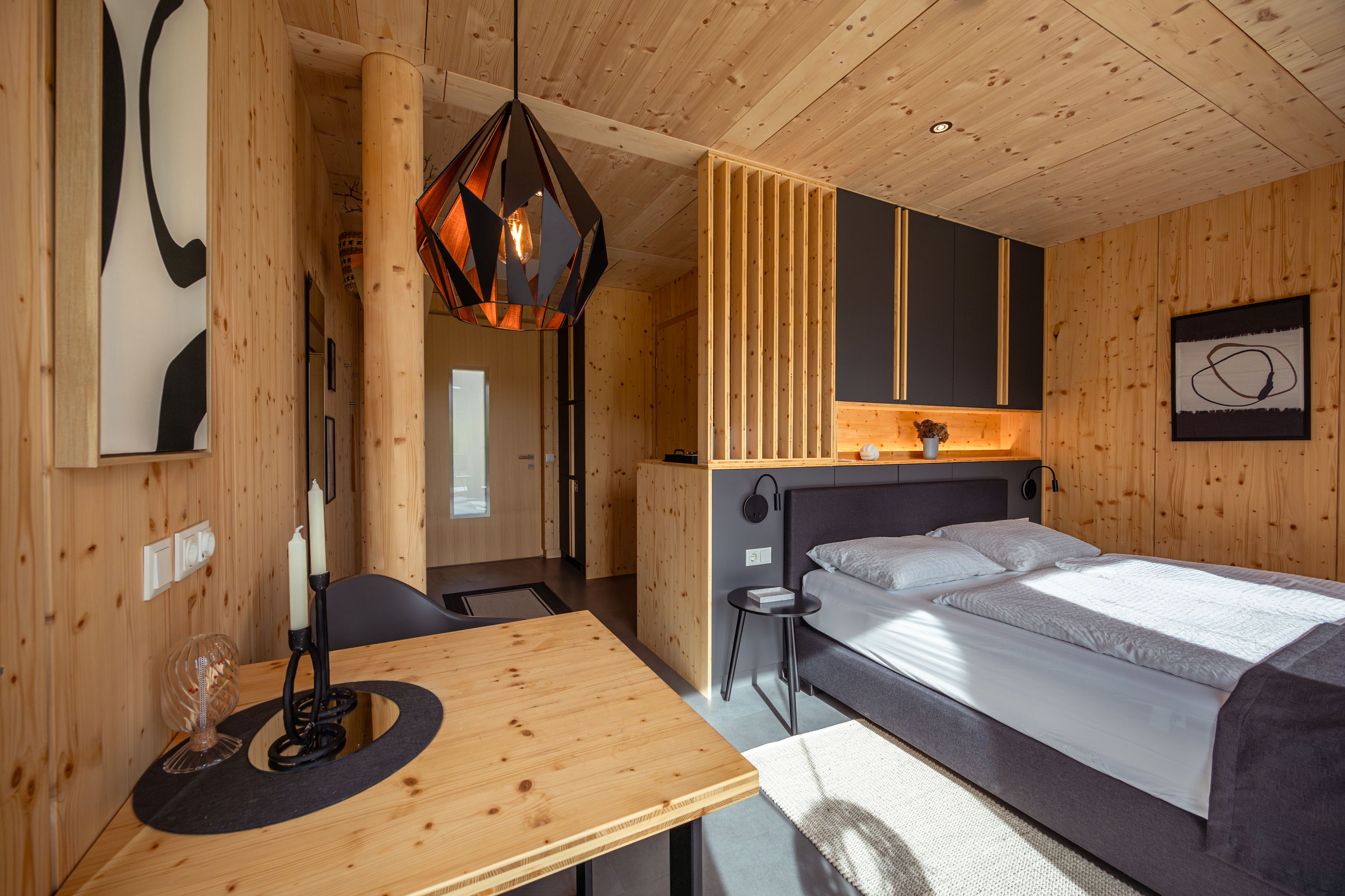 To, že se pět bungalovů nachází kousek od vyhlášené restaurace Bärenhof, není žádná náhoda. Michael Kolm, oceňovaný šéfkuchař, je nechal postavit pro své hosty – a všechny ostatní příznivce Waldviertelu. Tak autentické a blízké přírodě, jako je i jeho kuchyně. S rozlohou 18 až 25 m², velkými panoramatickými okny do zeleně a útulností, která potěší každé srdce. Každá lodge má něco jedinečného, ať už to je pohodlná sedací lavice u okna nebo soukromá sauna. A jídlo? Stačí popojít pár kroků k nejlepšímu kuchaři.