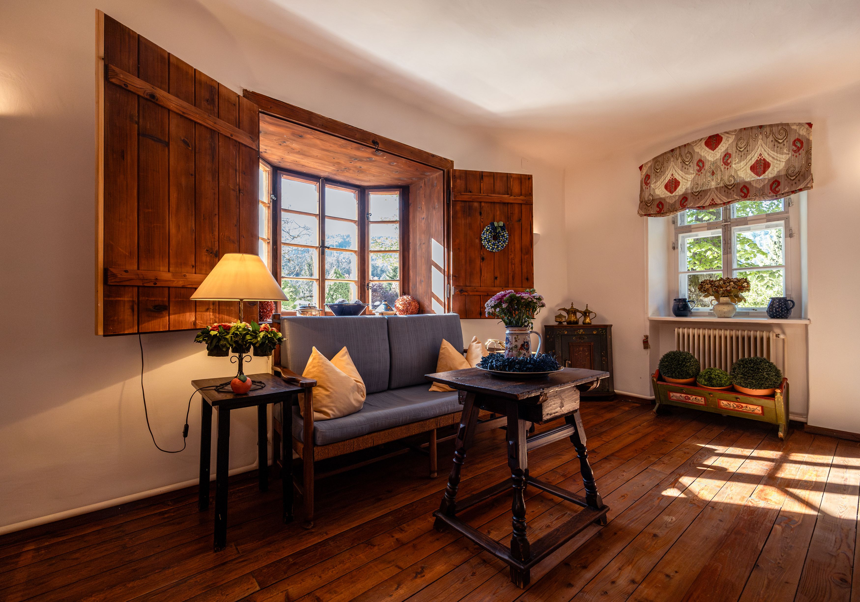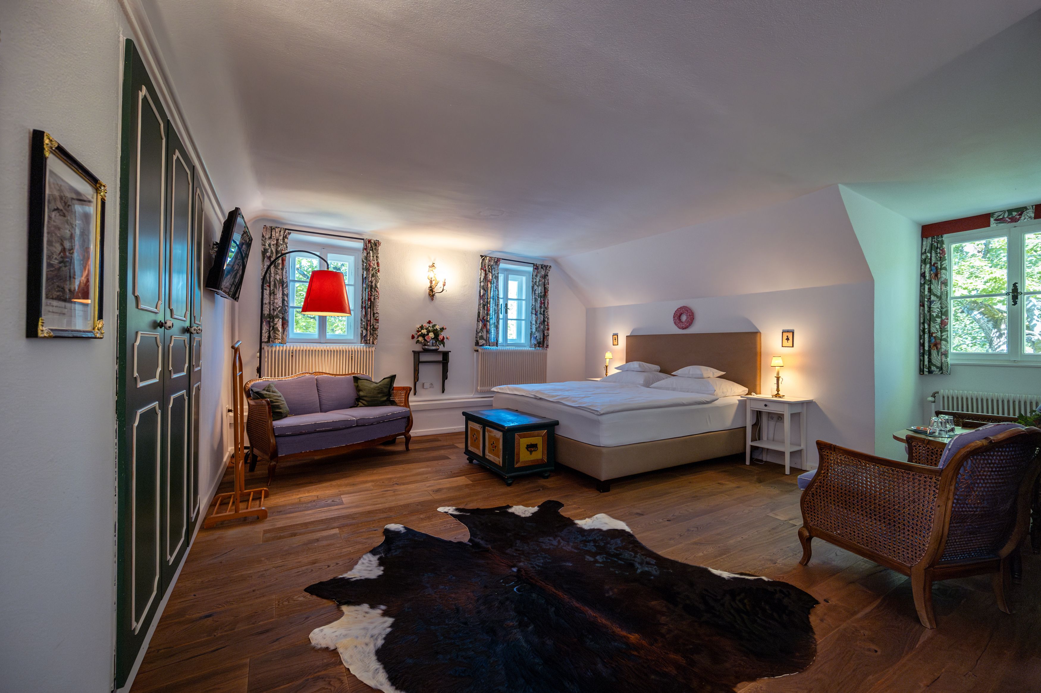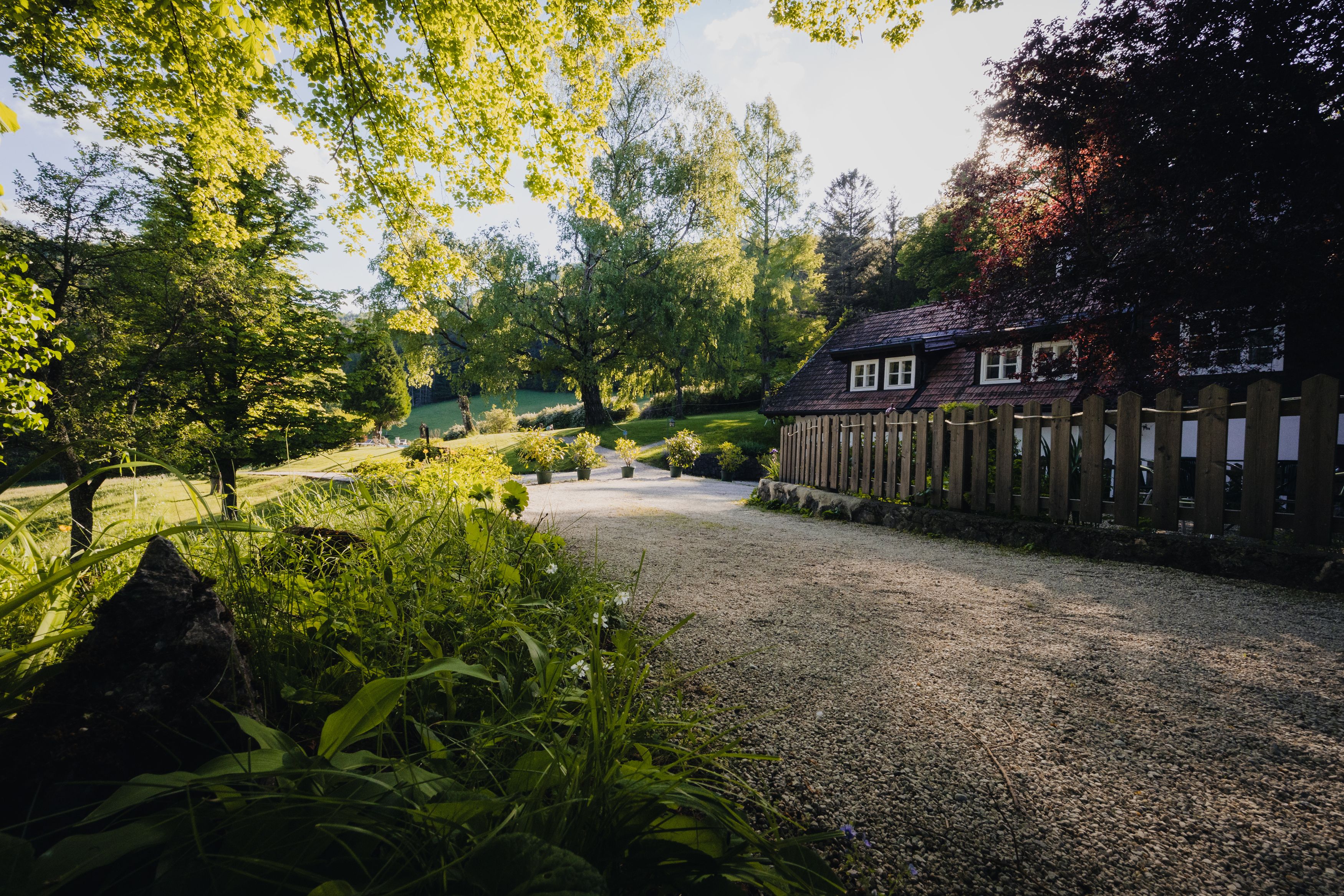 „Absolutně klidná poloha“ tady není v žádném případě přehnané tvrzení. K venkovskému stavení starému přes 570 let s pěti okouzlujícími pokoji totiž náleží i 13hektarové panství: rozlehlá zahrada s bazénem, barevné bylinkové louky s pasoucími se krávami, dva malé rybníky a stinný les. Všechno tu přímo vybízí k pobytu v přírodě. Také působivé vodopády Myra jsou odtud vzdáleny jen 10 minut chůze. A protože po pobytu venku vždy vyhládne, majitelé osobně vám každý den uvaří ve své malé, ale výtečné kuchyni oblíbená regionální jídla.