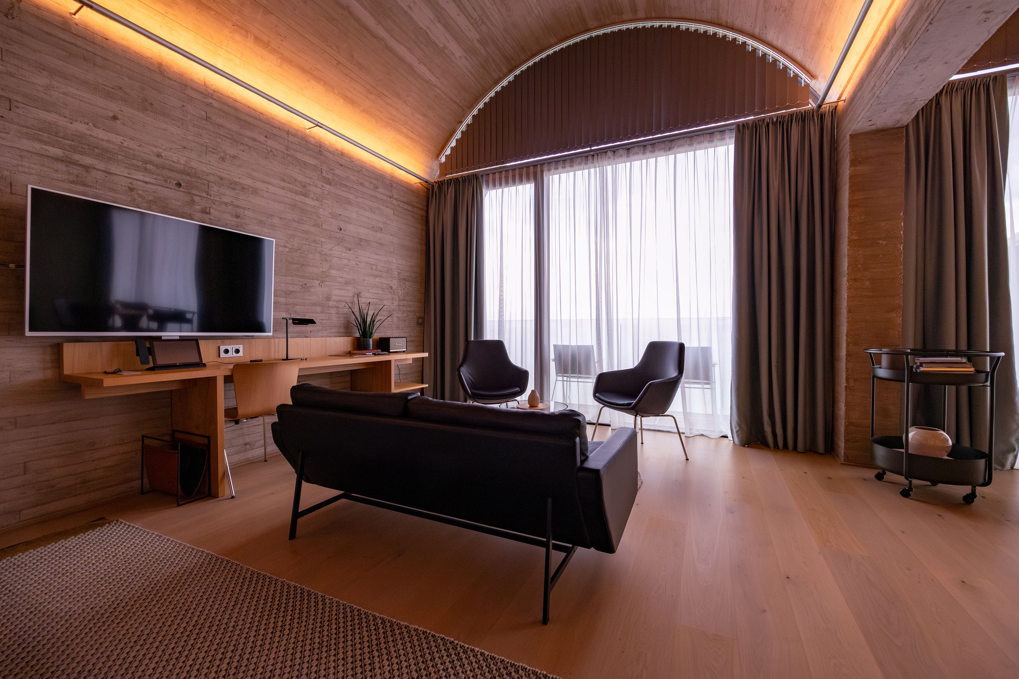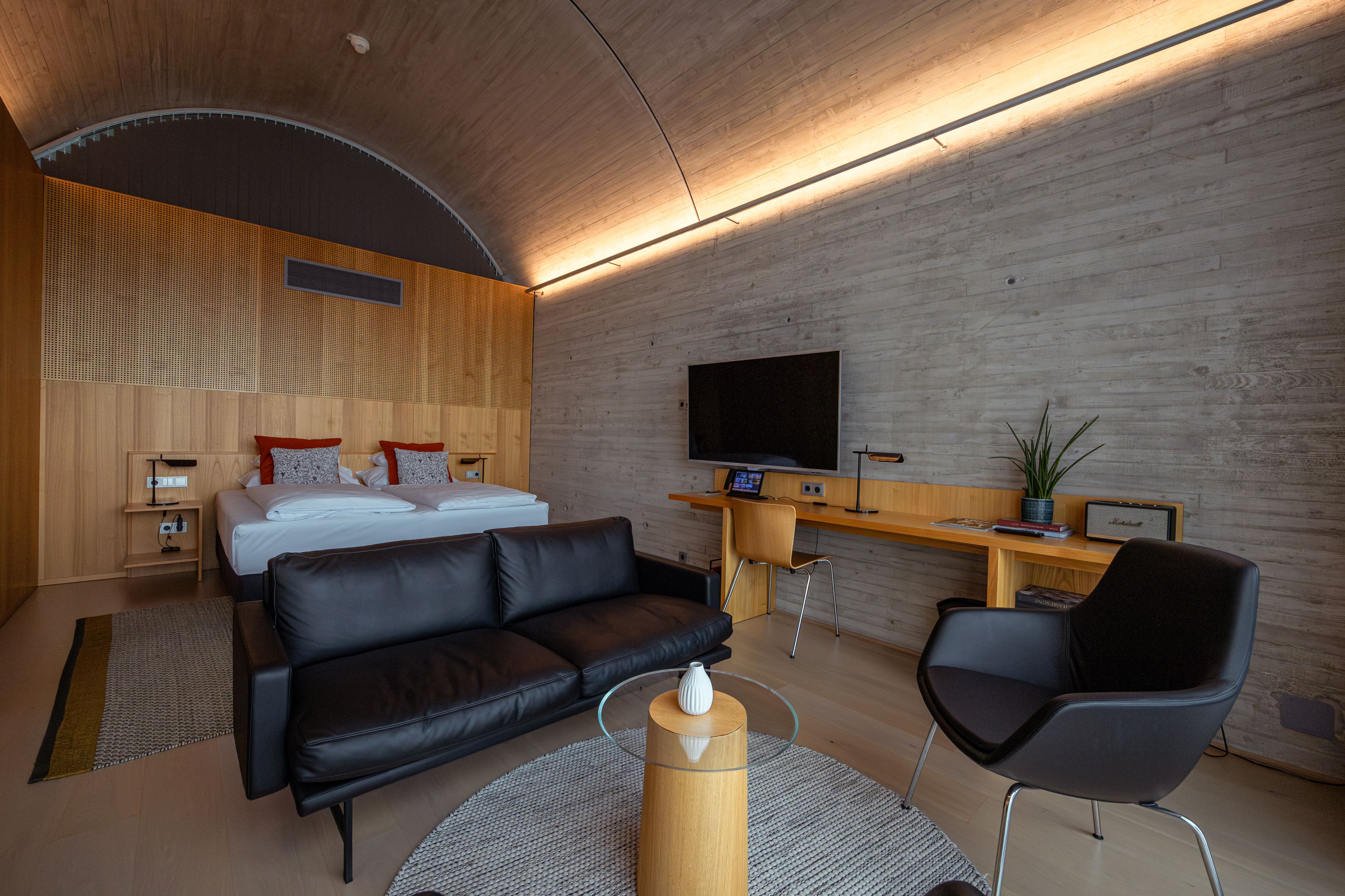 Budova navržená americkým hvězdným architektem Stevenem Hollem přináší do tradiční vinařské oblasti moderní životní styl. Všechny pokoje různých kategorií nabízejí nádherný výhled a útulné vybavení. Po aktivním dni na kole, pěší túře nebo degustaci na Vinné stezce doplníte síly v restauraci či baru – anebo si dopřejete masáž, kosmetickou proceduru či saunu ve wellness zóně. Ať už skočíte do přírodního koupacího jezírka nebo vyhřívaného venkovního bazénu – obojí je skvělý nápad.