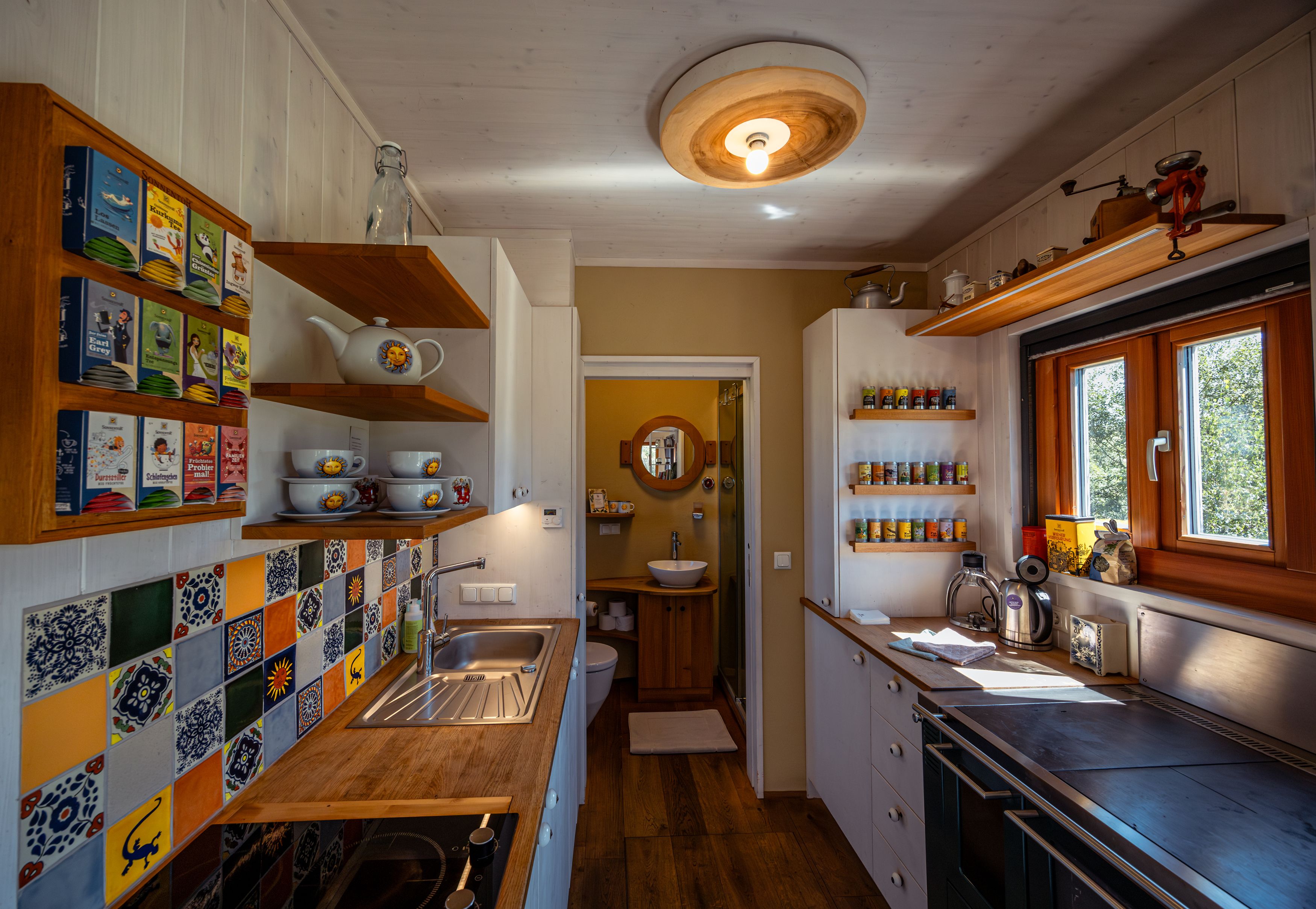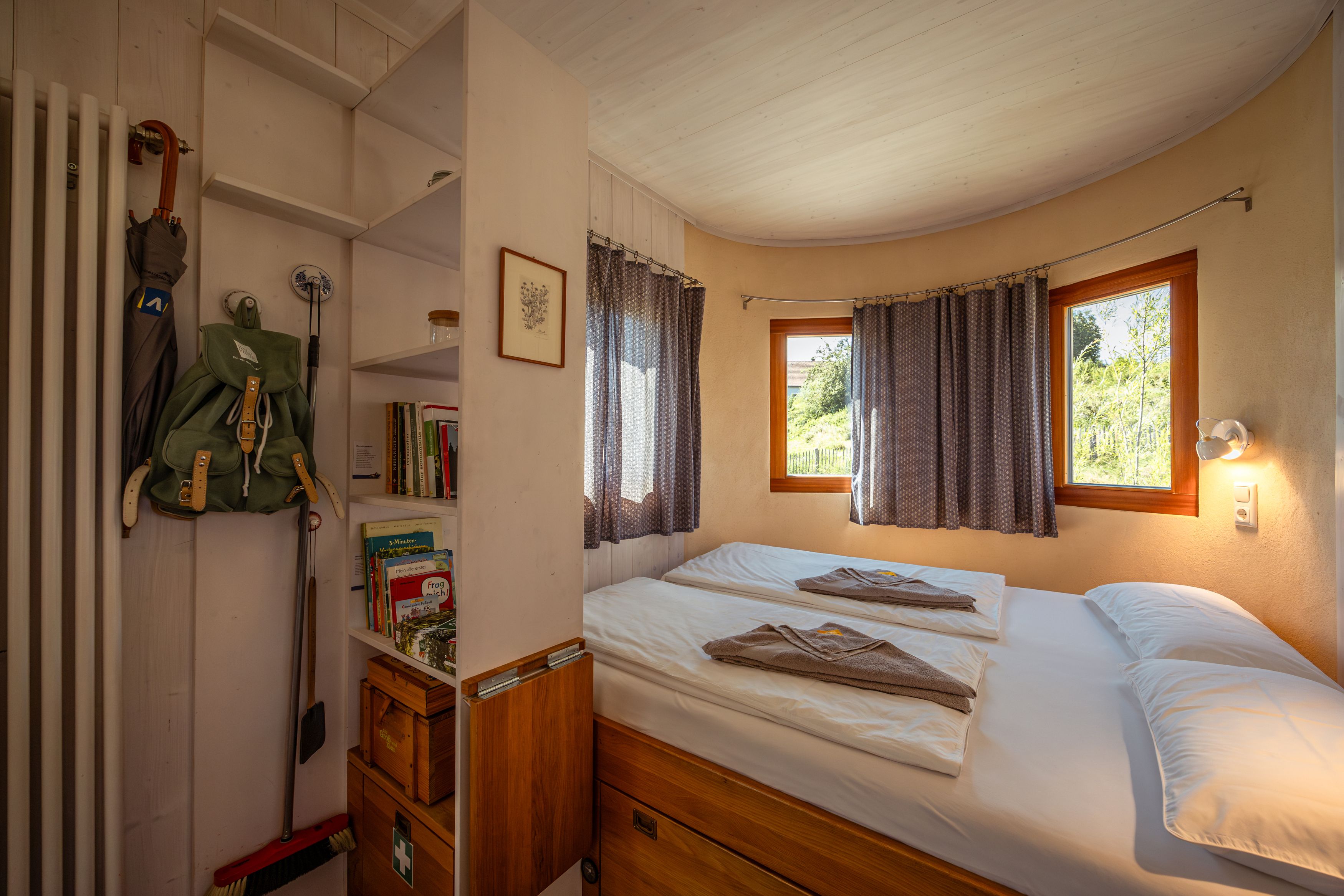 Dva útulné tiny houses byly postaveny výhradně z udržitelných materiálů přímo uprostřed bylinkové zahrady. Na ploše 31 metrů čtverečních nabízí každý domeček dostatek místa až pro pět osob, ať už k pohodlnému posezení u kamen nebo ke společnému vaření v pestré kuchyni – nejlépe samozřejmě s kořením SONNENTOR. A když už jste tady, rozhodně byste neměli vynechat zajímavou prohlídku provozu. A pěšky se tu můžete ostatně vydat kamkoli. Večer pak ještě příjemné posezení u táboráku a pak rovnou do měkoučké postele.