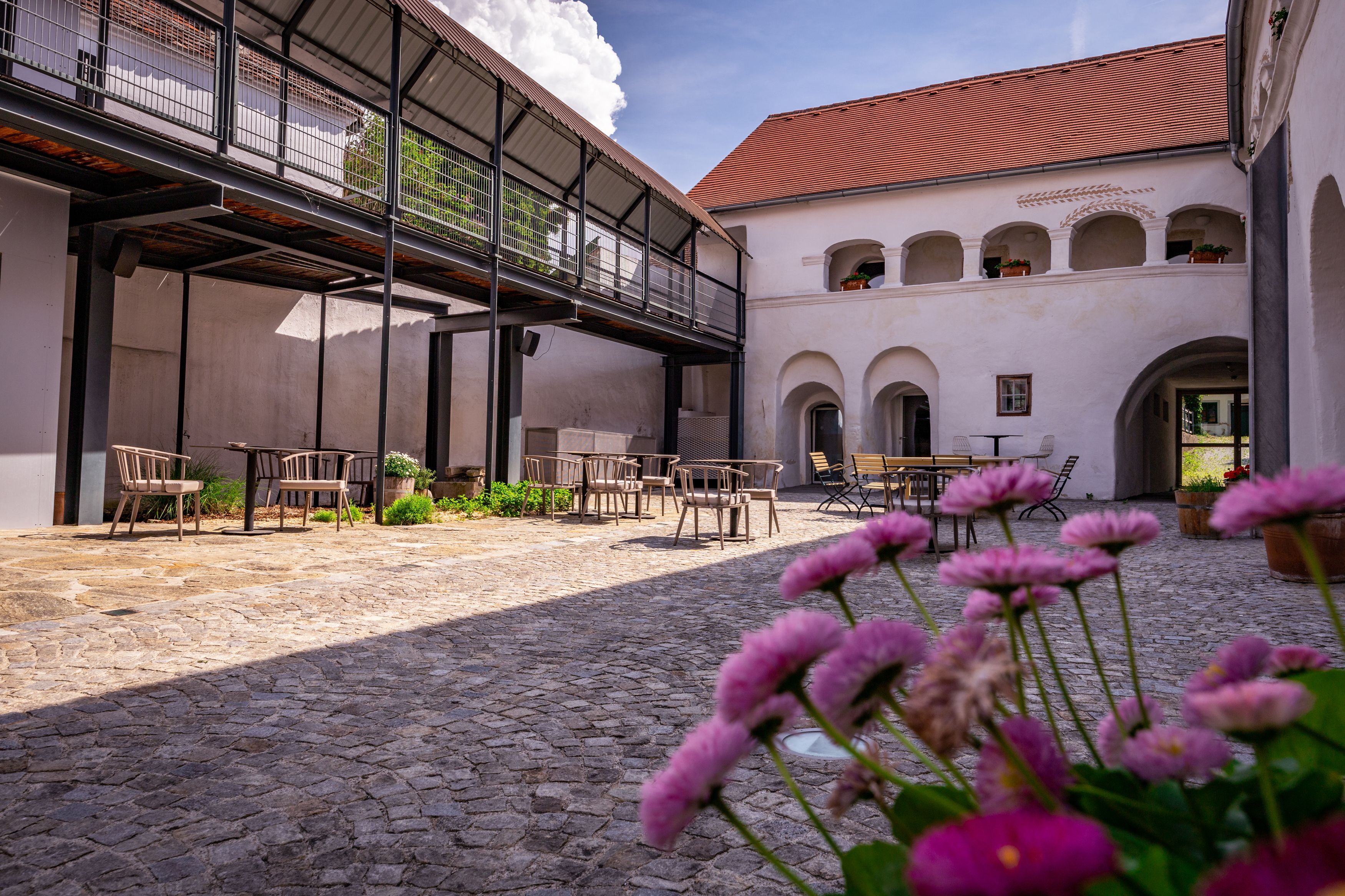 Dříve projížděly čtyřstranným uzavřeným statkem povozy naložené hrozny a obilí se skladovalo v arkádách. Dnes arkády propůjčují malebnému vnitřnímu dvoru, v kterém se pořádá spousta akcí, výjimečnou atmosféru.