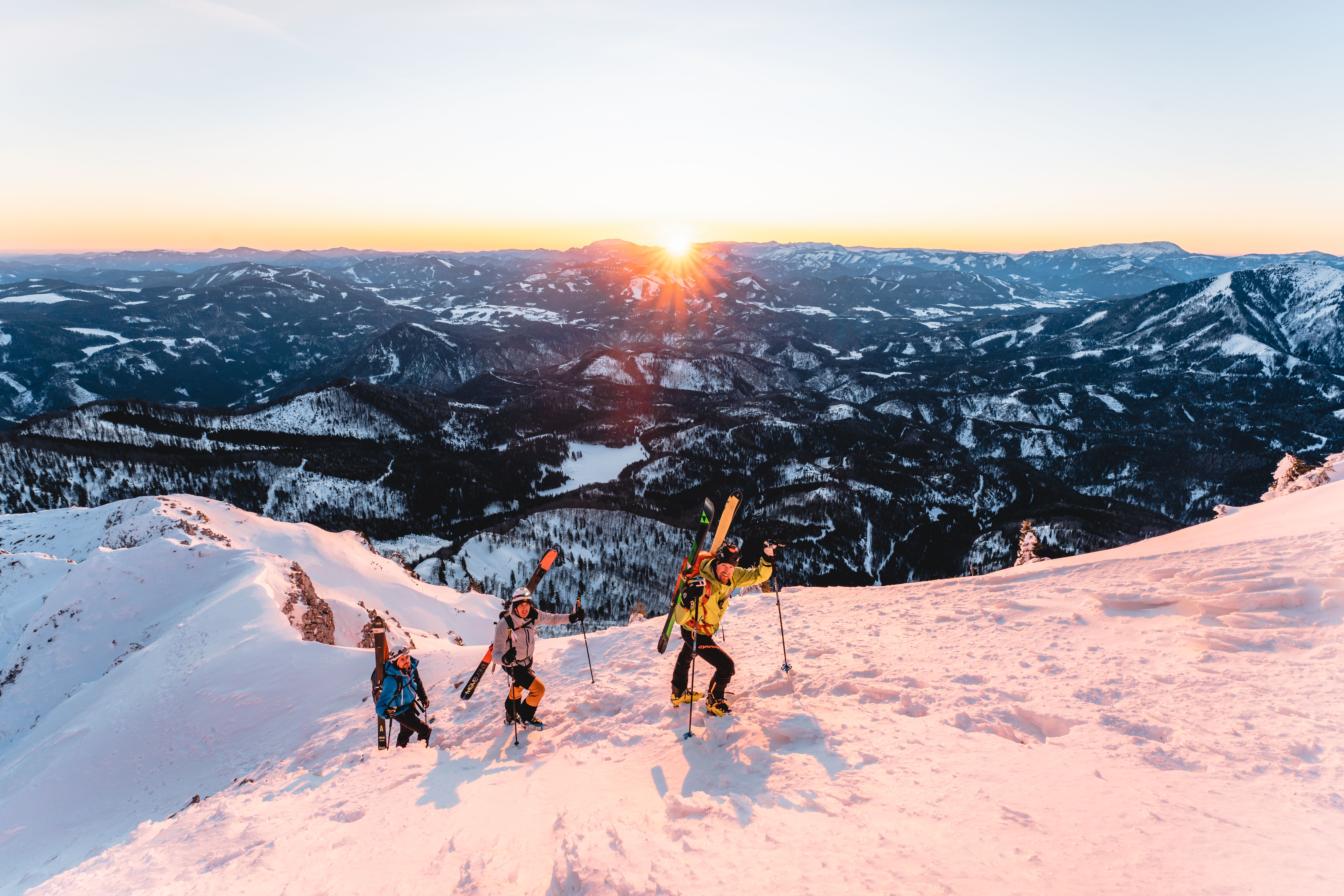 Ať už při večerní atmosféře na Ötscheru, s výhledy do dálek z vrcholu Tirolerkogel nebo při prvním výšlapu v oblasti St. Aegyd: nejkrásnější skitouringové oblasti a trasy pro ještě o trochu větší zážitek z přírody.