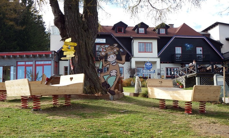 Od údolní stanice sedačkové lanovky na Mönichkirchner Schwaig, dále k Hallerhausu a přes Steinerne Stiege na křižovatku Vorauer Schwaig. Návrat idylickou cestou přes Studentenkreuz na Mönichkirchner Schwaig, Alpengasthof Enzian 1200 m a Berggasthof 1200 m, poté zpět do výchozího bodu.