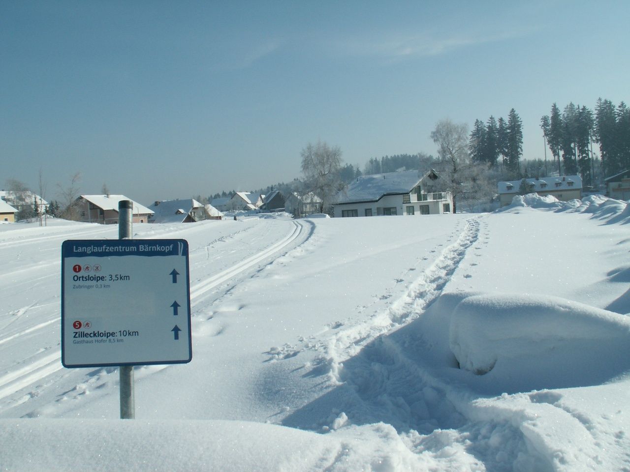 Obtížnost červená (střední), délka 10 km, převýšení 120 m, celkové stoupání 190 m Tato trasa odbočuje z vesnické louky na jih, míjí dva rybníky a je spíše na slunečné straně. Pouze stoupání po 6.-8. km je v lese.