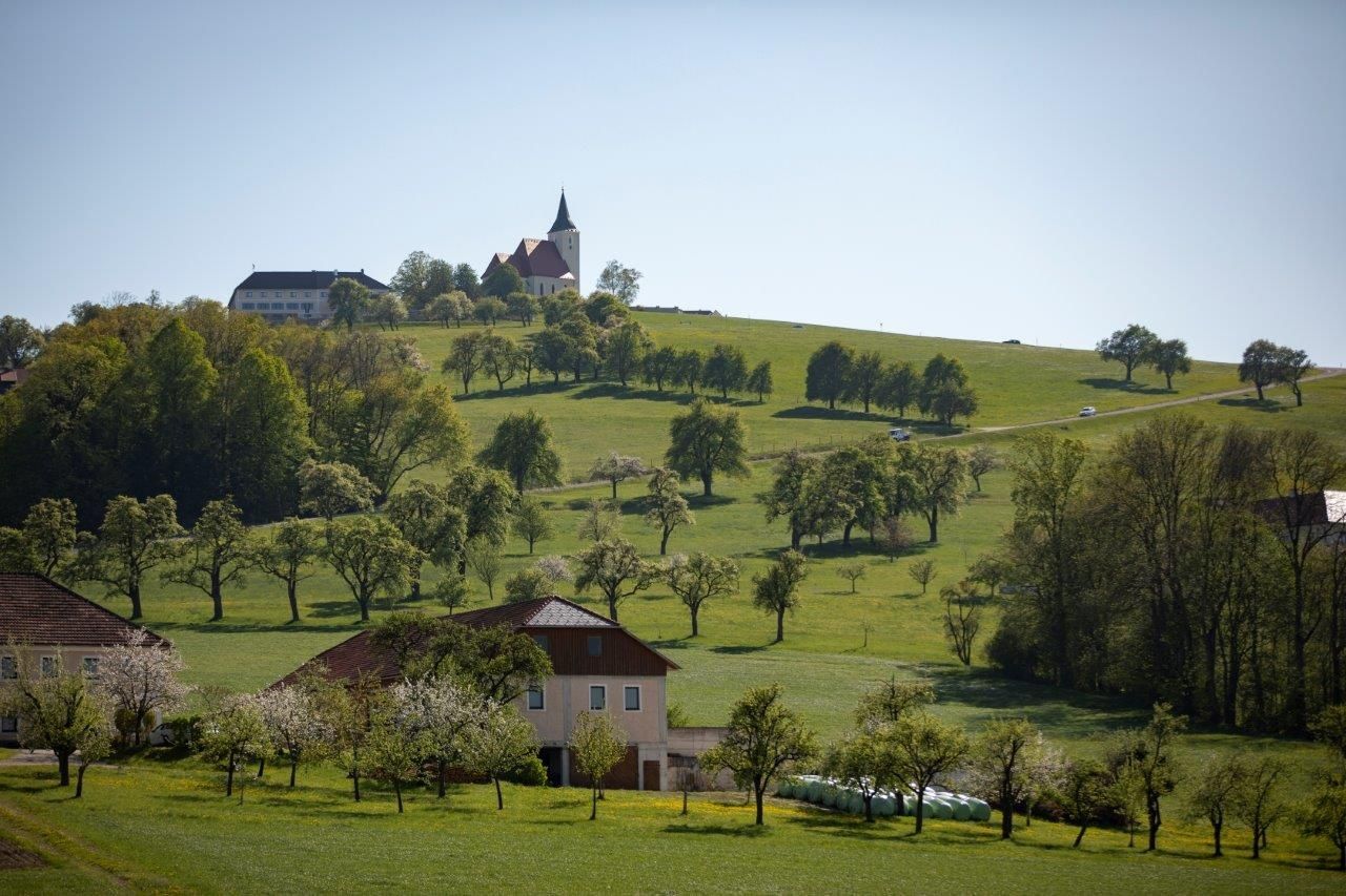 Brzy však opět odbočíte doprava a nad sebou uvidíte kostel svatého Michaela nad Bruckbachem. Travnatá hora se před vámi tyčí jako mírný obr a silnice rychle stoupá do sklonu přes 12 %. Stejně jako na Mont Ventoux v Provence může být hora bez stromů velmi náročná. Námaha stojí za to - na vrcholu vás odmění báječný výhled na Mostviertel, zejména na Moststraße.