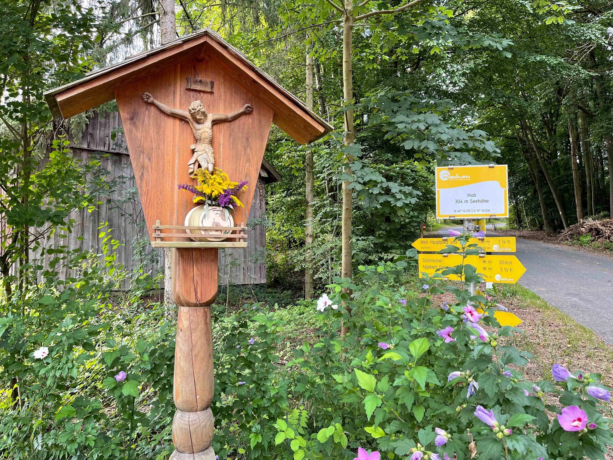Z hlavního náměstí v Melku, povede naše cesta přes klášter Stift Melk, nahoru ke kopci Pielachberg a dále ke kříži Jonaskreuz. Zde je kromě pěkného zastavení krásný pohled na Dunaj, na Jauerling a celé okolí. Po staré cestě půjdeme dále k Schönbühelu, kde je zámek, který sa vyplatí vidět. Naše trasa vede přes Berging, následně lesem směrem nahoru k vyvýšenině Hohenwarther Höhe, kde máme krásné výhledy na okolí nad stěnou Dunkelsteinerwald. Přes Hohenwarthberg vede cesta dolů, do Aggsbach Dorf, kde naše etapa končí u kovárny Hammerschmiede.