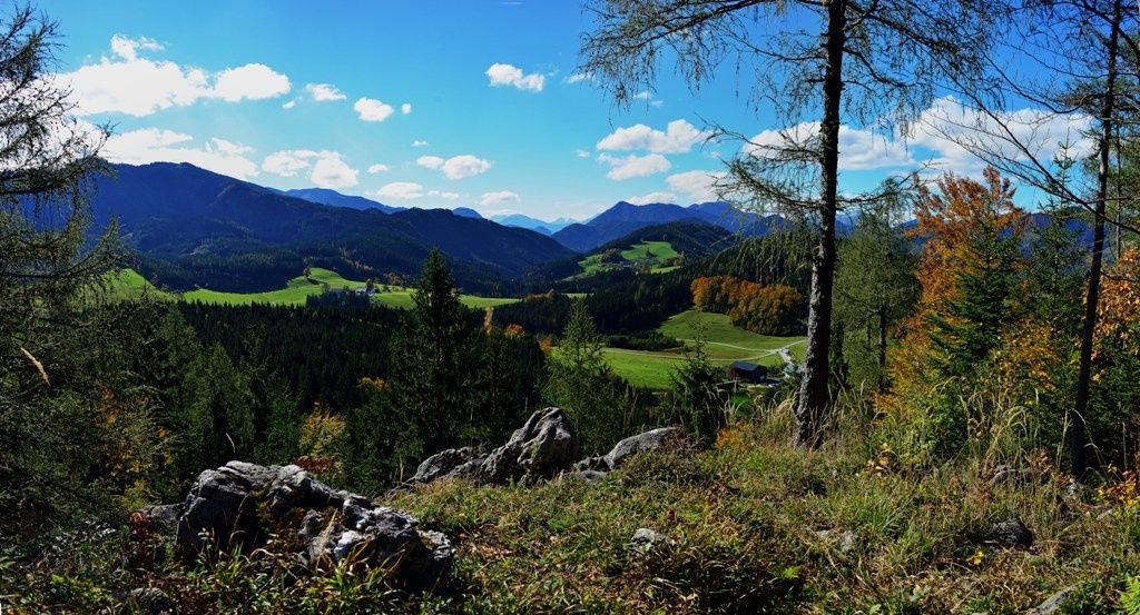 Přes vyhlídku Steinkogel pokračujte přes Ablasser Mauern na Sonnstein. Nádherný výhled na Hochreit a pohoří Göstling s lavičkami k odpočinku.