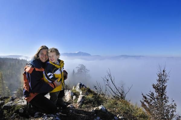Inverzní počasí – na hřebenech sluníčko, v údolí mlha. Takové inverzní počasí se zřetelně projeví především v horách. Zatímco dole v údolí se celý den převaluje mlha, nahoře na kopcích svítí sluneční paprsky. Není nic lepšího než se vydat nahoru na Hohe Wand a načerpat energii ze sluníčka. Stolová hora Hohe Wand je sice náhorní rovinou, ale přesto ne pořád rovnou, a tak nás pěší túra vede kopcovitým lesem přírodního parku k různým hostincům, k návštěvnickému centru přírodního parku a k vyhlídce „Skywalk“.