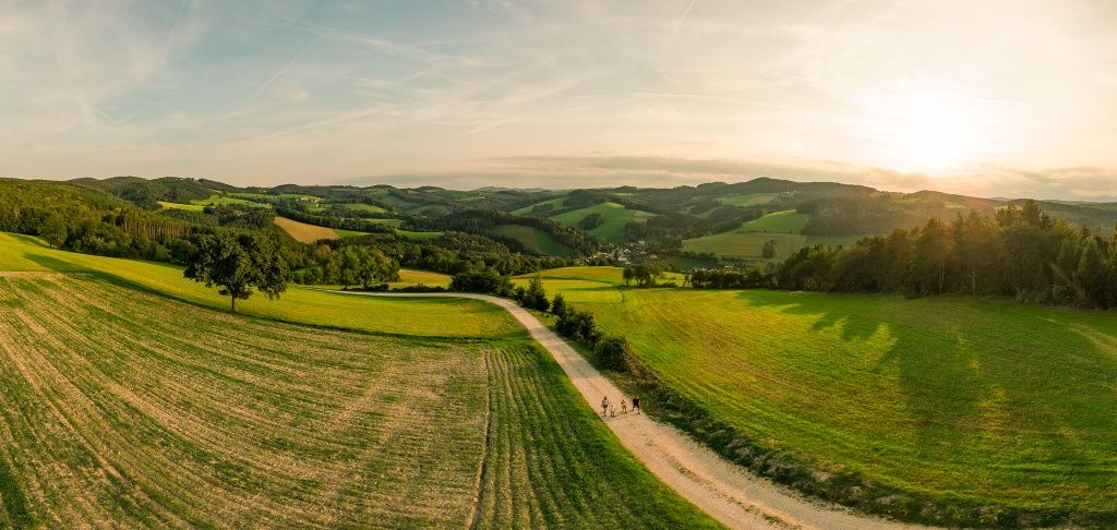 Kromě výletních cílů, zastávek na občerstvení a energetických bodů nejsou opomenuty ani výhledy. Rozhledna Wiesen-Lanzenkirchen se nachází jen pár minut chůze od stezky a odmění vás horským panoramatem přes údolí až k Schneebergu, Raxu, Hohe Wandu a Semmeringu. Za jasného počasí se na obzoru třpytí také jezero Neusieder See. Výhled z Beneru v Klingfurthu u Walpersbachu je úplně jiný: toto místo je nejen jedním z energetických bodů, ale také odhaluje důvod, proč se Buckelige Welt nazývá také zemí 1000 kopců. Jeden kopec zde navazuje na druhý a do krajiny se prolíná jen několik malých osad. Všude kolem se rozprostírá výhled na pole, louky a lesy v různých odstínech zelené, což vytváří velmi zvláštní světelnou atmosféru.