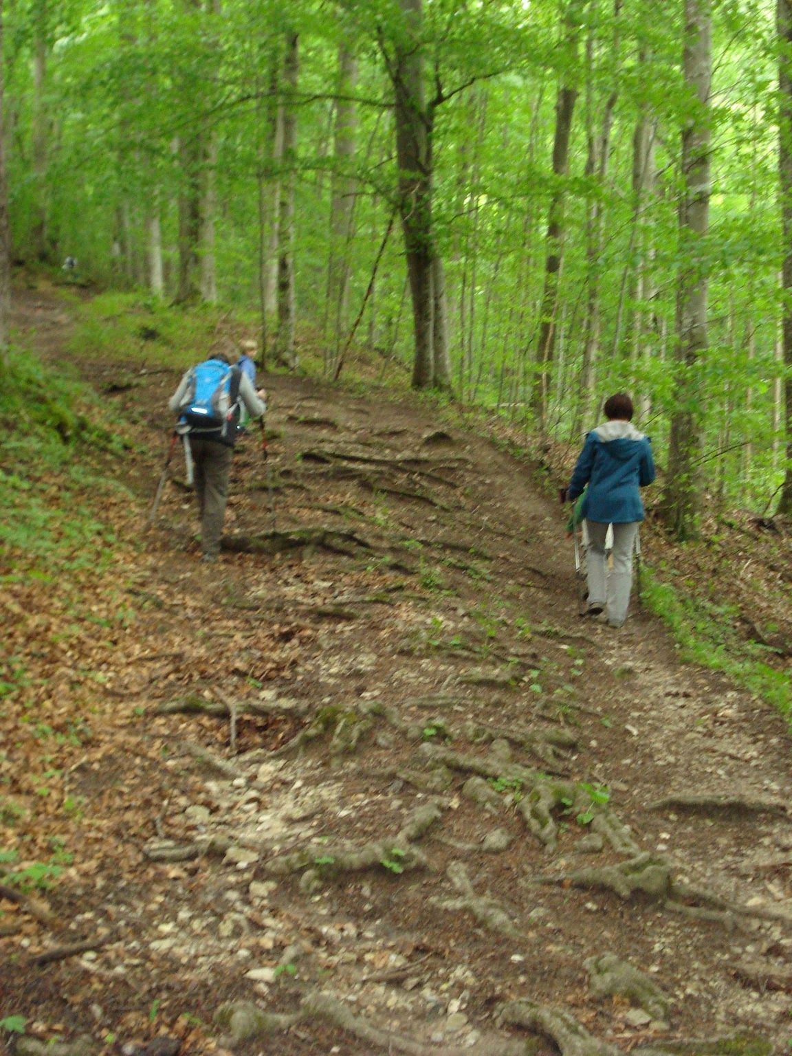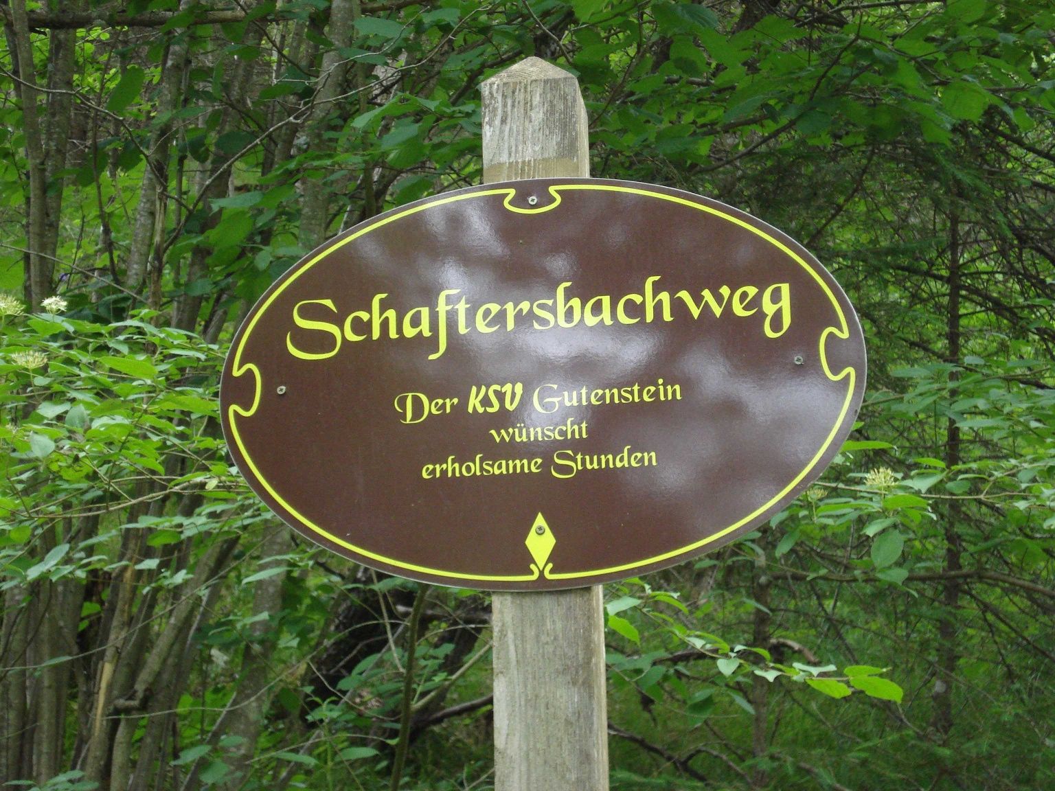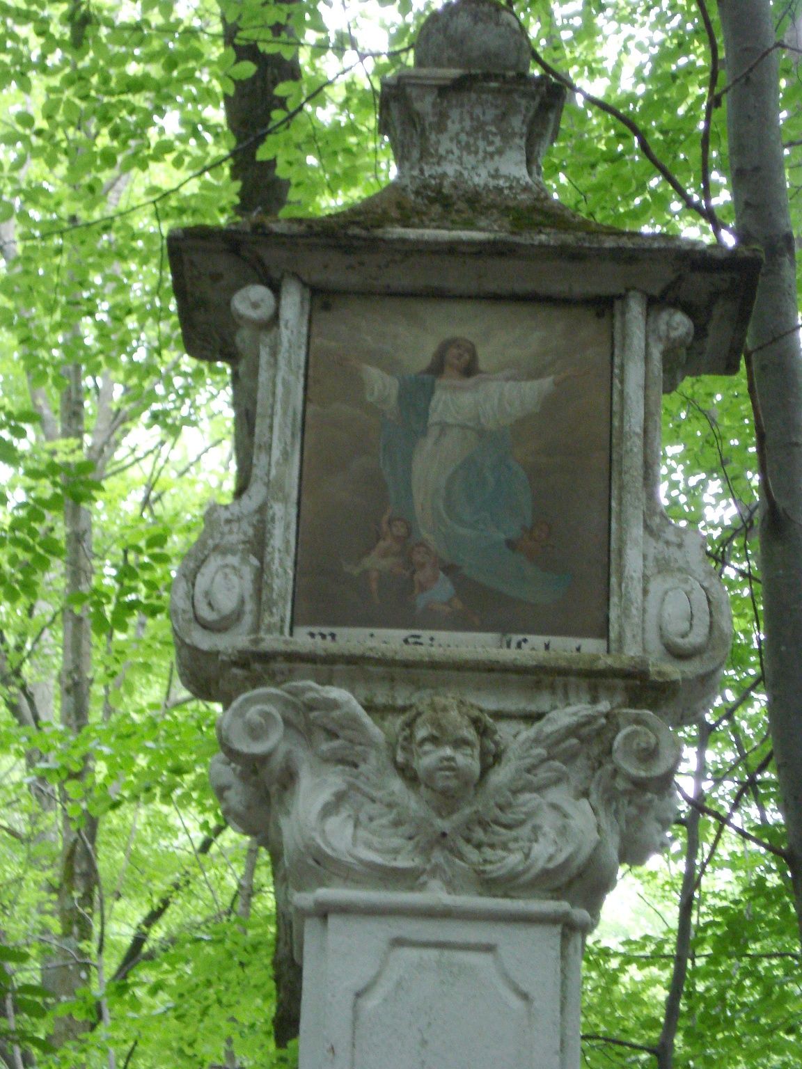 Od kostela sejdeme po kořenové cestě podél kapliček zobrazujících Mariin život zpět do údolí k hasičské stanici. V hustém bukovém lese se z mýtiny nabízí pohled na zříceninu hradu Gutenstein.