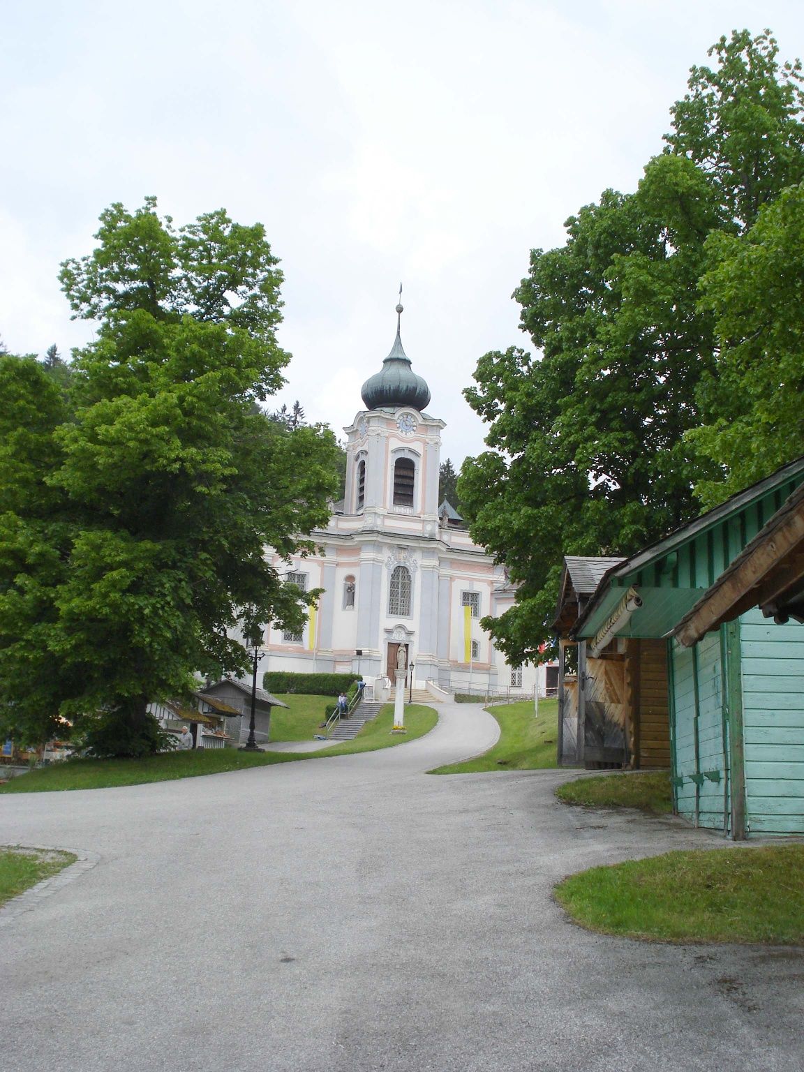 Vyjdeme-li z lesa, spatříme malebný poutní kostel a klášter servitů na malém návrší. Výstup stojí za to už jen kvůli fantastickému panoramatu na Schneeberg, Schober, Öhler a Großer Neukogel, místní horu Gutensteinu. Když minete kostel po levé straně, vyplatí se udělat si půlhodinovou zajížďku ke křížové cestě na Mariahilfberg, na jejímž konci je to, co stojí za vidění, výhled do údolí Klostertal.