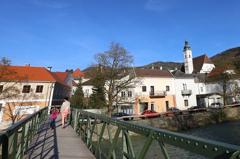 Od břehu Erlaufu k radničnímu náměstí.