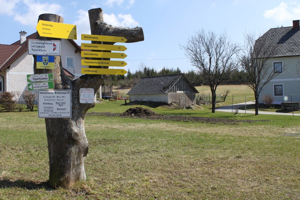 Alluviální cesta - Bärnkopf, č. 61 Aluviální cesta vede kolem rybníků Schlesingerteich a Hubertusteich. Na informačních tabulích podél trasy se můžete dozvědět více o bývalém zatopení lesa v lese Weinsberg.