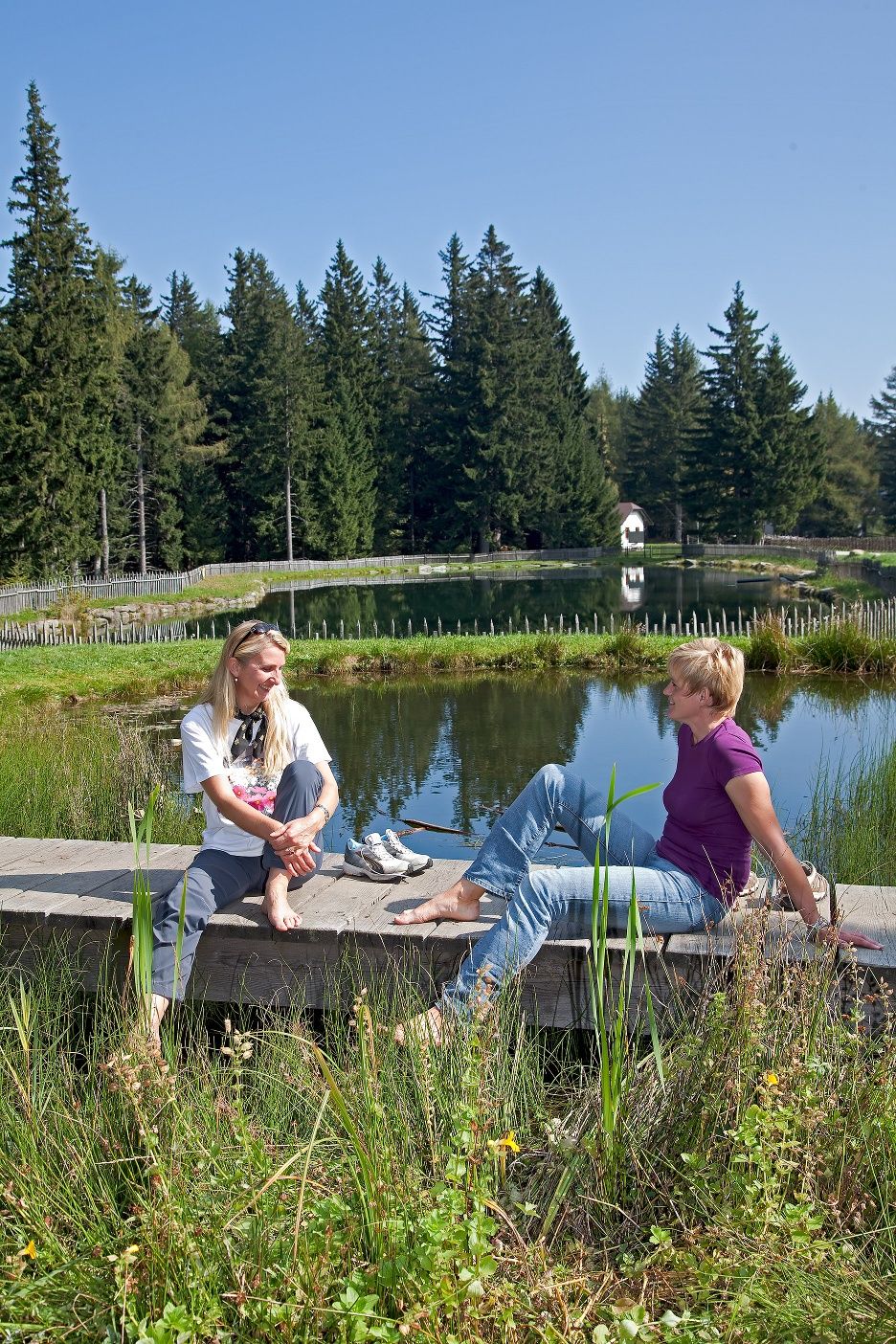 Zásobování a uchovávání vody v minulosti a současnosti. U malého ukázkového pramene v lese můžete vidět, jak je voda filtrována potrubím, jakmile se vynoří mezi kameny, a poté protéká přes oblázkové lože a je znovu filtrována, než stéká do zásobárny pitné vody. Na mírných loukách Mönichkirchner Schwaig se nakonec dostanete k jezírku napájenému pramenem Wechselquelle s vodou v kvalitě pitné vody, která se v zimě používá jako hasicí voda a k zasněžování sjezdovek. V biotopu vedle rybníka žije velké množství živočichů, o kterých se dozvíte na informační tabuli. V Grenzbacherl Niederösterreich - Steiermark je pak vhodné si odpočinout a zastavit se na občerstvení v horské chatě, než se vydáte zpět dolů do obce. dozvědět se něco o koloběhu vody od deště přes vznik pramene až po potok a rybník.