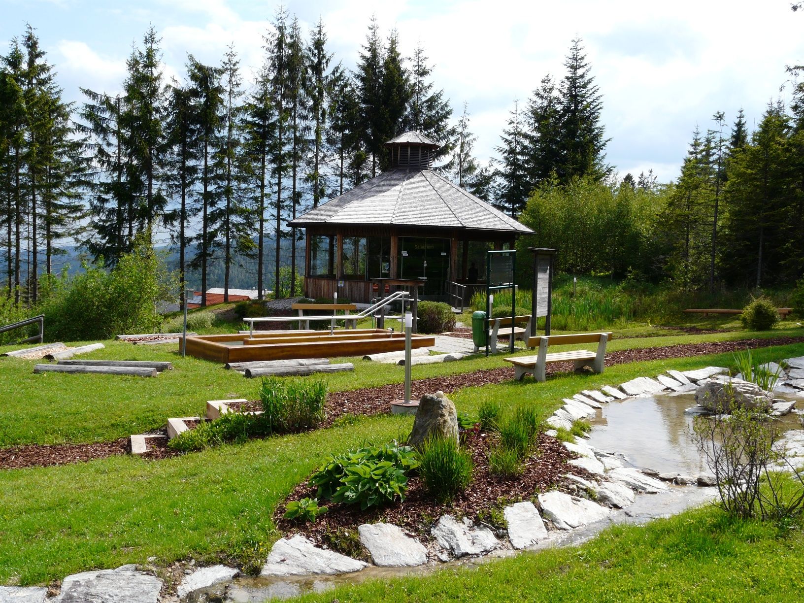 Římský bůh vody Neptun, socha z pískovce ze St. Margartehen a skal z Wechselgebit, vítá turisty. Na mýtině s širokým výhledem na hrbatý svět si můžete bosou nohou osahat vodu a různé druhy lesní půdy, jako je štěrk, oblázky nebo kameny, na Kneippově a emotivní stezce. V prosklené budově, Salaeriu, vás obklopí nádherná vůně lesa a jemný zvuk vlnící se vody. Solanka stékající po roští obohacuje vzduch o jemné částečky soli, které mají při vdechování léčivé účinky na nemoci dýchacích cest. Lehká nálada poskytuje uklidňující účinek. Zde můžete jednoduše vydechnout, nechat svou mysl bloudit a relaxovat. U vyvýšené nádrže se dozvíte zajímavé informace a otázky týkající se např.