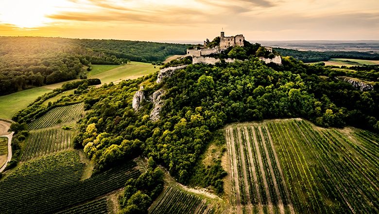 Malá vinařská obec Falkenstein se vždy vyznačovala vínem. Velkolepé vinice, tyčící se zřícenina hradu, jehož původní verze byla započata v 11. století, malebná sklepní ulička, v níž se nachází dobrých 50 lisoven, a také množství kapliček, soch a malých kapliček u cesty poskytují nádhernou turistickou kulisu.