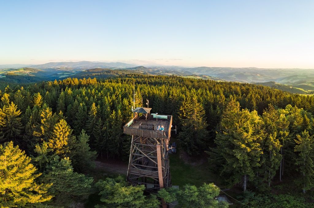 Trasa vede přes zříceninu hradu Kirchschlag a vyhlídkovou plošinu Hutwisch (nejvyšší bod Regionu) z městečka Kirchschlag, kde se konají pašijové hry, do lázní Bad Schönau a nabízí krásné výhledy na 1000 kopců Buckelige Welt.