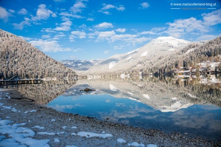 Okruh kolem jezera Erlaufsee je ideální pro krátkou zimní procházku. Jezerní promenáda se klikatí podél jezera a nabízí nádherná místa k zastavení. Vzhledem k nízké intenzitě dopravy v zimě není problémem ani zpáteční cesta po polní cestě.