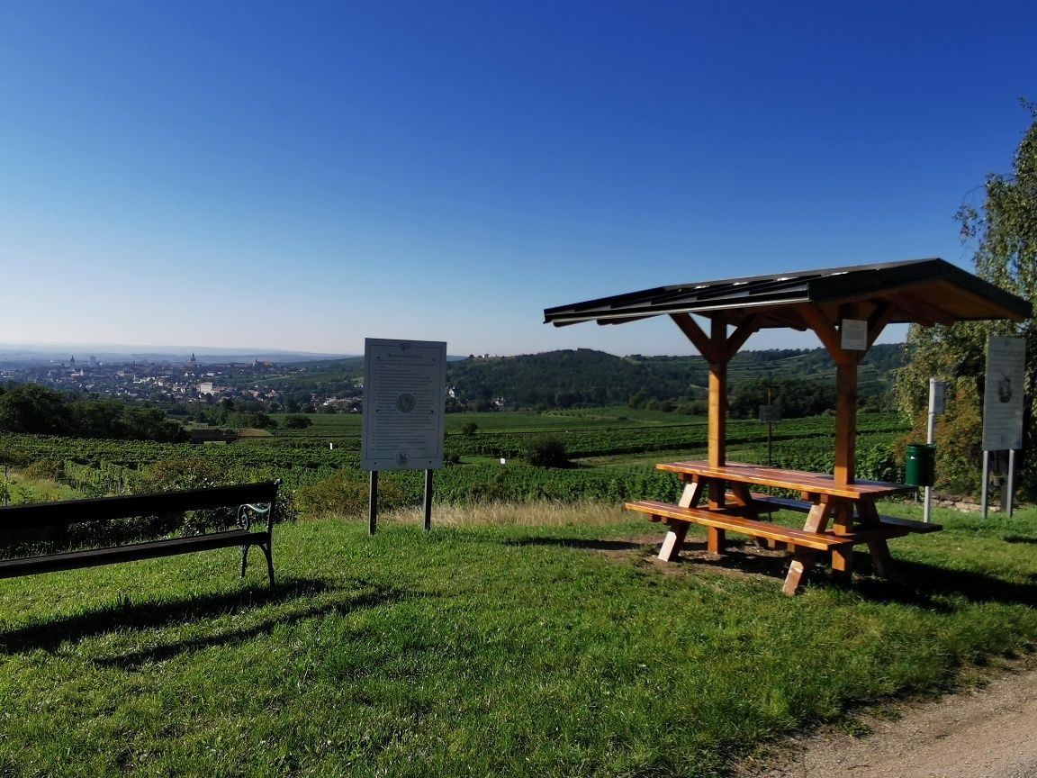 Hlavní náměstí - městskou kašnu - opouštíme branami Verderber a Znaimertor. Na křižovatce je před námi rozcestí; my se vydáme na levé rozcestí - do ulice Fladnitzerstraße - směrem na Hardegg. Po přibližně 200 metrech odbočíme doprava do venkovské nákupní ulice Lange Zeile. Na konci ulice Lange Zeile začíná vinařská stezka, která nás vede přes kopcovité vinice, kolem odrůdové vinice až k Altenbergu. Kolem vinařského domu Winzerhaus am Altenberg, směrem k železničnímu přejezdu, se vpravo podél Setzbergu vracíme zpět do města. Cesta vede do Lange Zeile, kde Altstadtheurige (rodina Lehningerů, Lange Zeile čp. 33) zve k zastávce na jídlo.