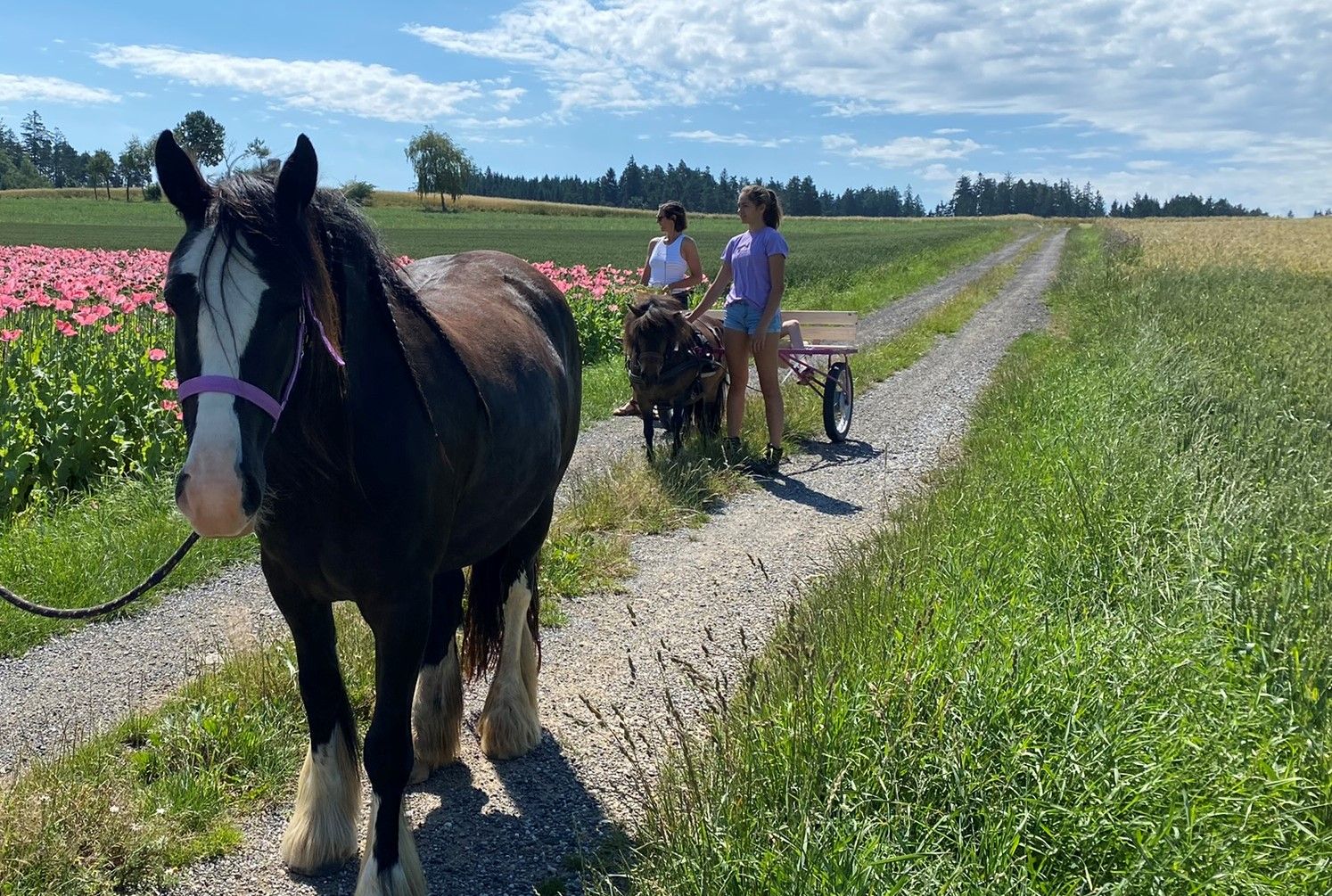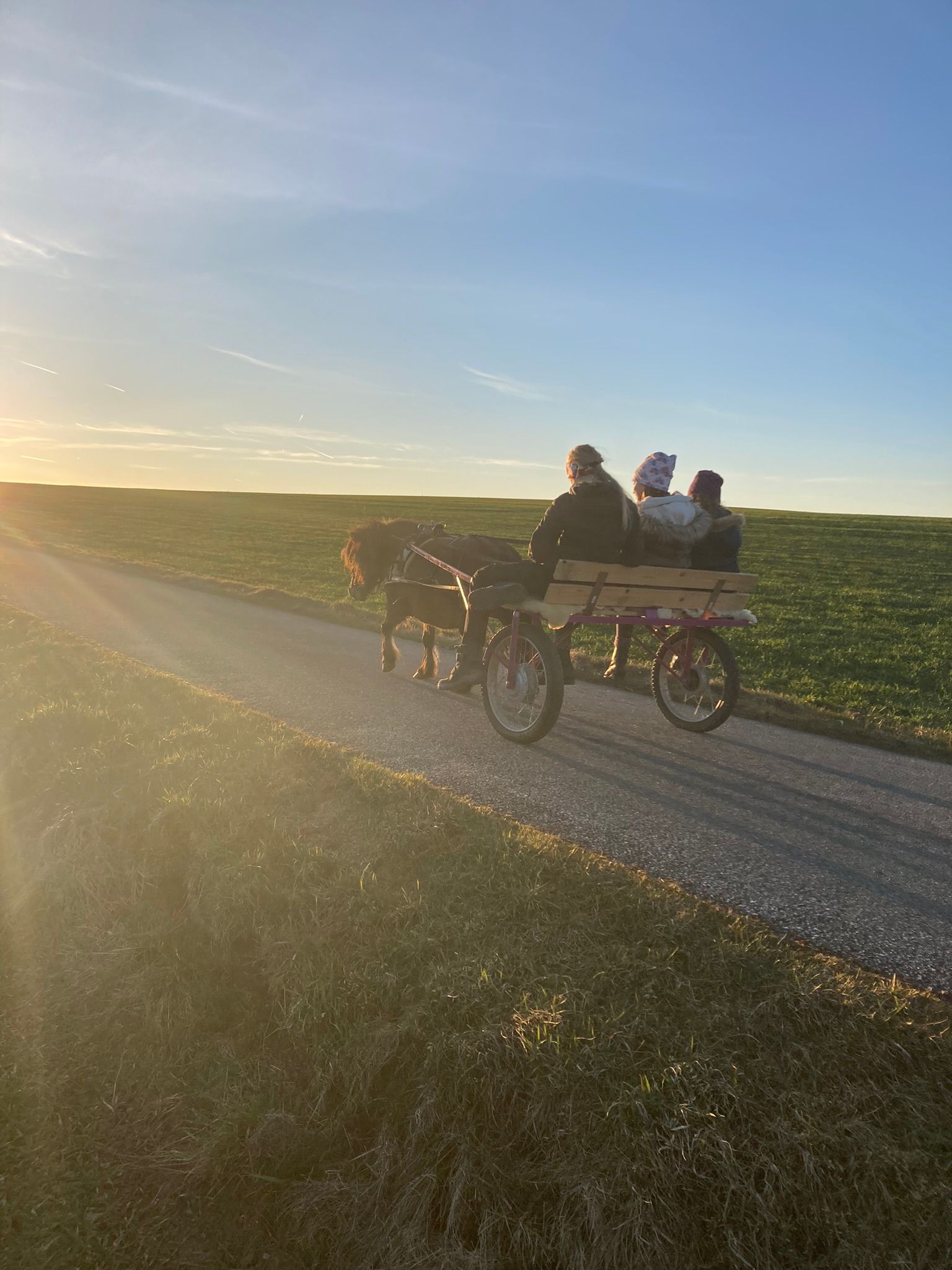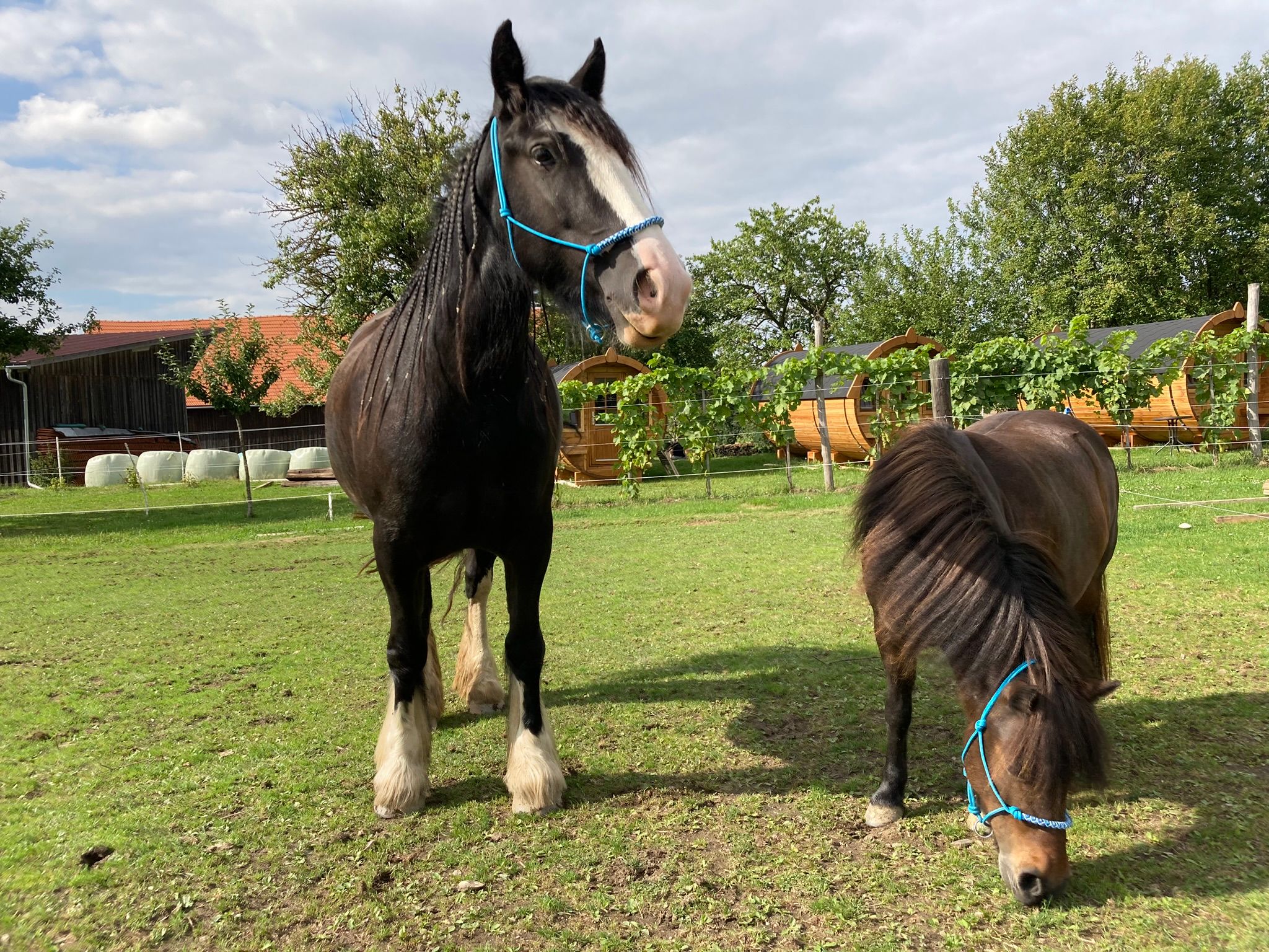 Po absolvování školení kvalifikovaných zemědělských pracovníků v současné době obhospodařujeme 1/3 z našich 15 hektarů půdy ekologicky pro chov koní, od 23. června nabízíme naše speciální spací sudy pro dovolenou na farmě a v současné době absolvujeme školení Greencare "Podpora zdraví na farmě" a "Intervence s pomocí zvířat" a brzy budeme moci rozšířit naši nabídku pro naše hosty.