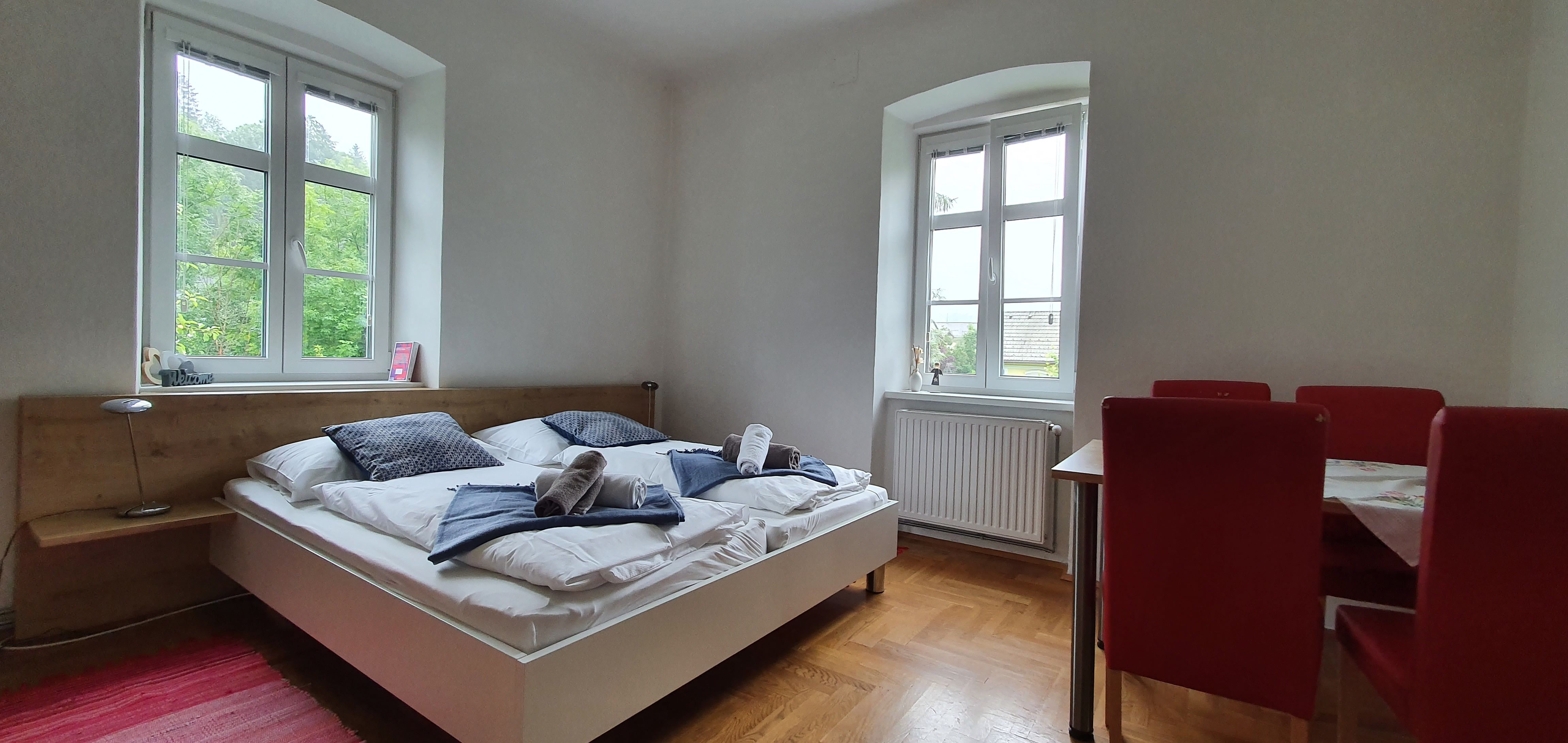 S láskou zrekonstruovaná poštovní stanice z dob K&K nyní nabízí dva komfortně zařízené byty různých velikostí (každý pro 4 osoby) přímo v centru Göstlingu.