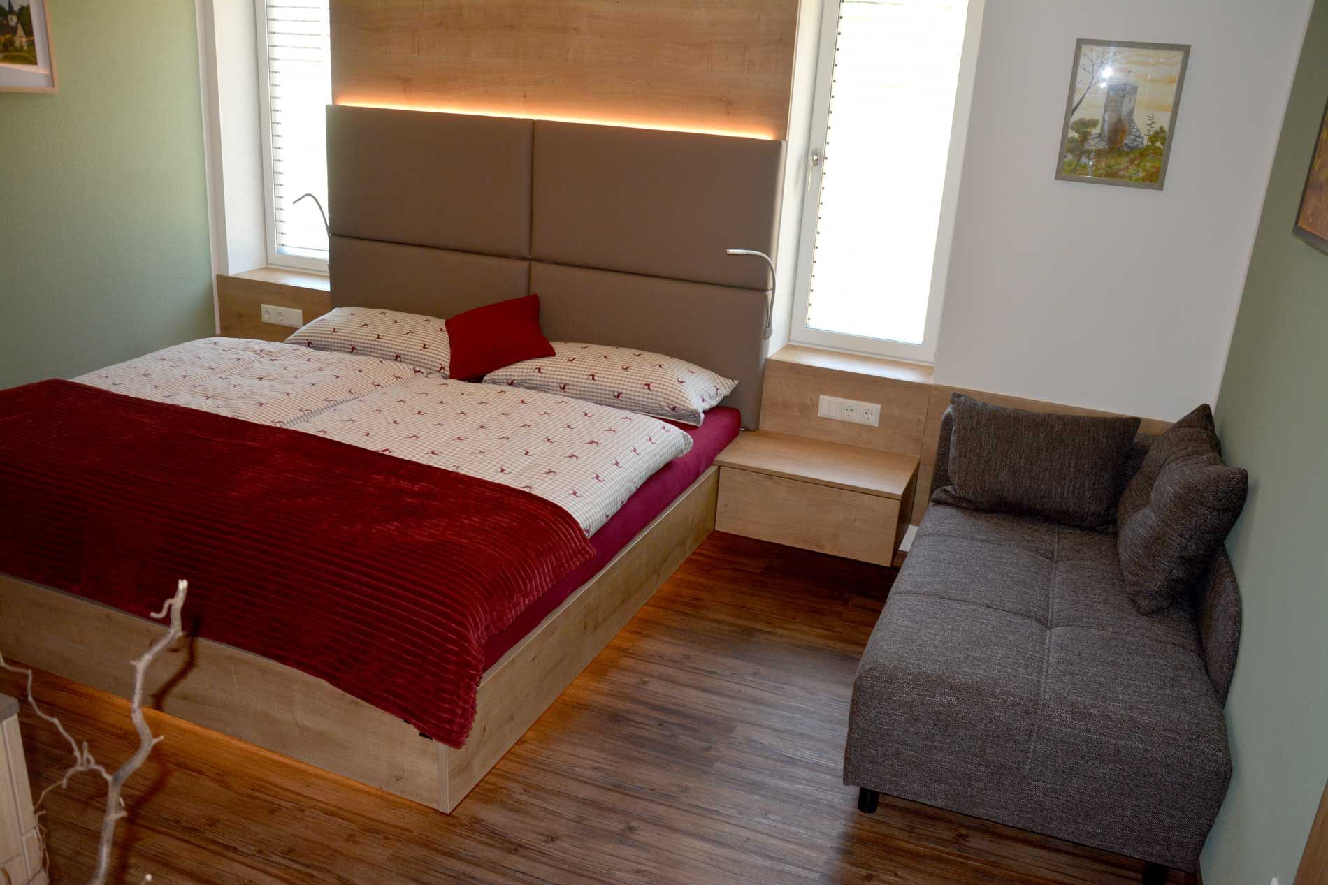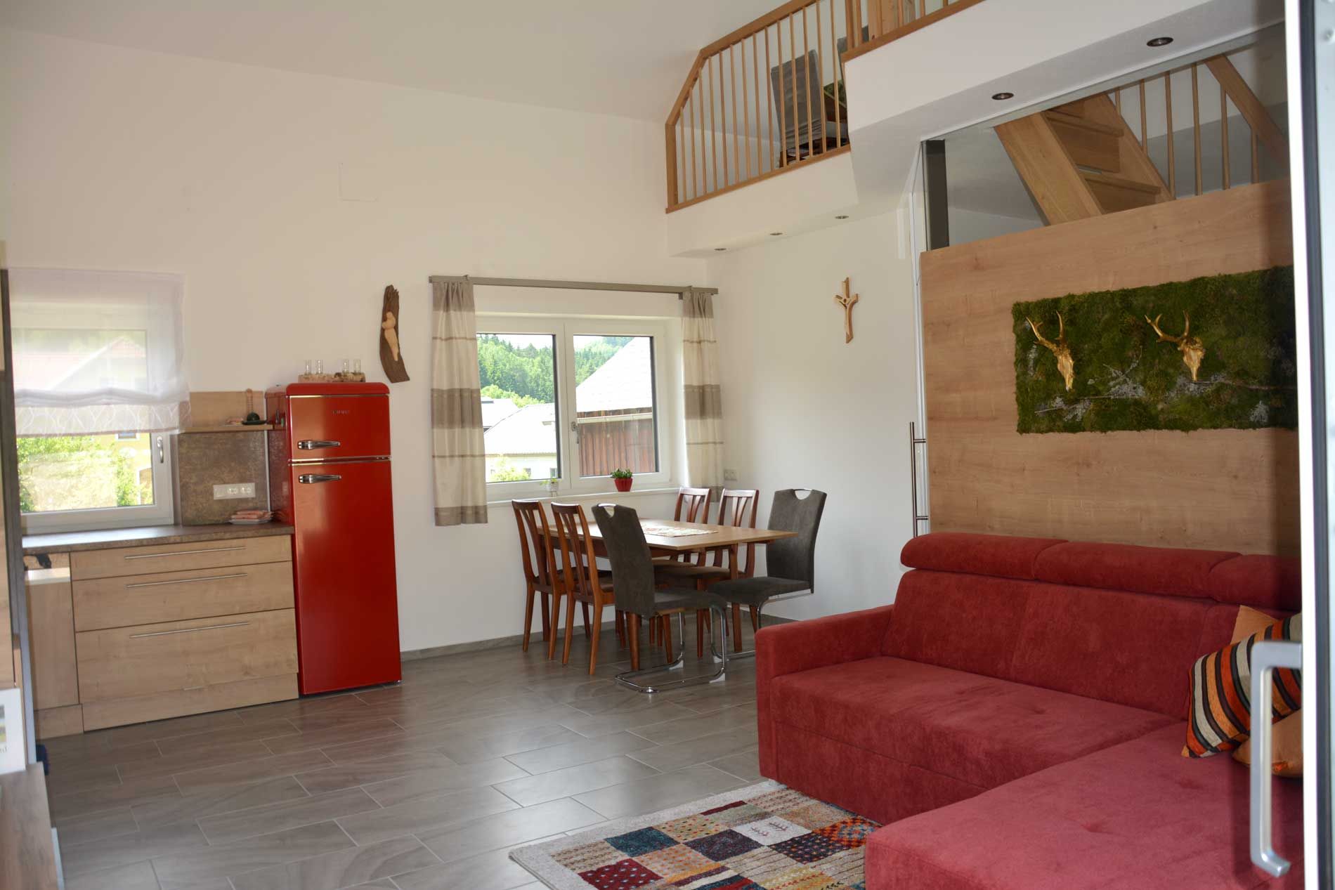 První zmínka o naší farmě pochází z roku 1750. Pivní a vinný bar zde byl zřízen pravděpodobně již před rokem 1700. Dům a statek jsme převzali od Hubertových rodičů v roce 1993 a od srpna 2016 hospodaříme ekologicky. V roce 2021 jsme si splnili sen o vlastním rekreačním bytě a těšíme se, že vás zde budeme moci přivítat. Chceme našim hostům nabídnout odpočinek s kvalitou - nezávislou dovolenou, férovou a udržitelnou. Stačí přijet a odpočívat. Načerpejte energii podle typu dovolené - ať už jde o lesní koupání na zasněných místech v přírodě, nejrůznější aktivity nebo návštěvu památek.
