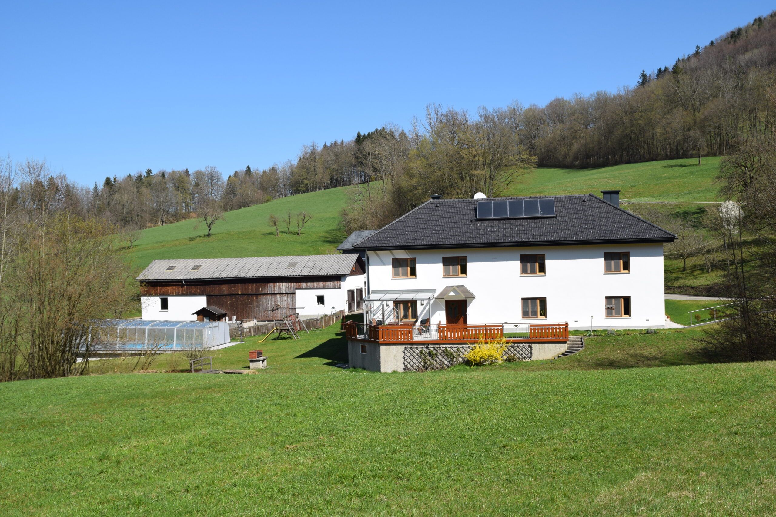 Naše farma se nachází na idylickém místě mezi loukami a lesy - pouhé dva kilometry od centra obce, a přesto uprostřed přírody. Rodiny zde najdou místo, kde se mohou zhluboka nadechnout, odpočinout si a strávit společný čas.
