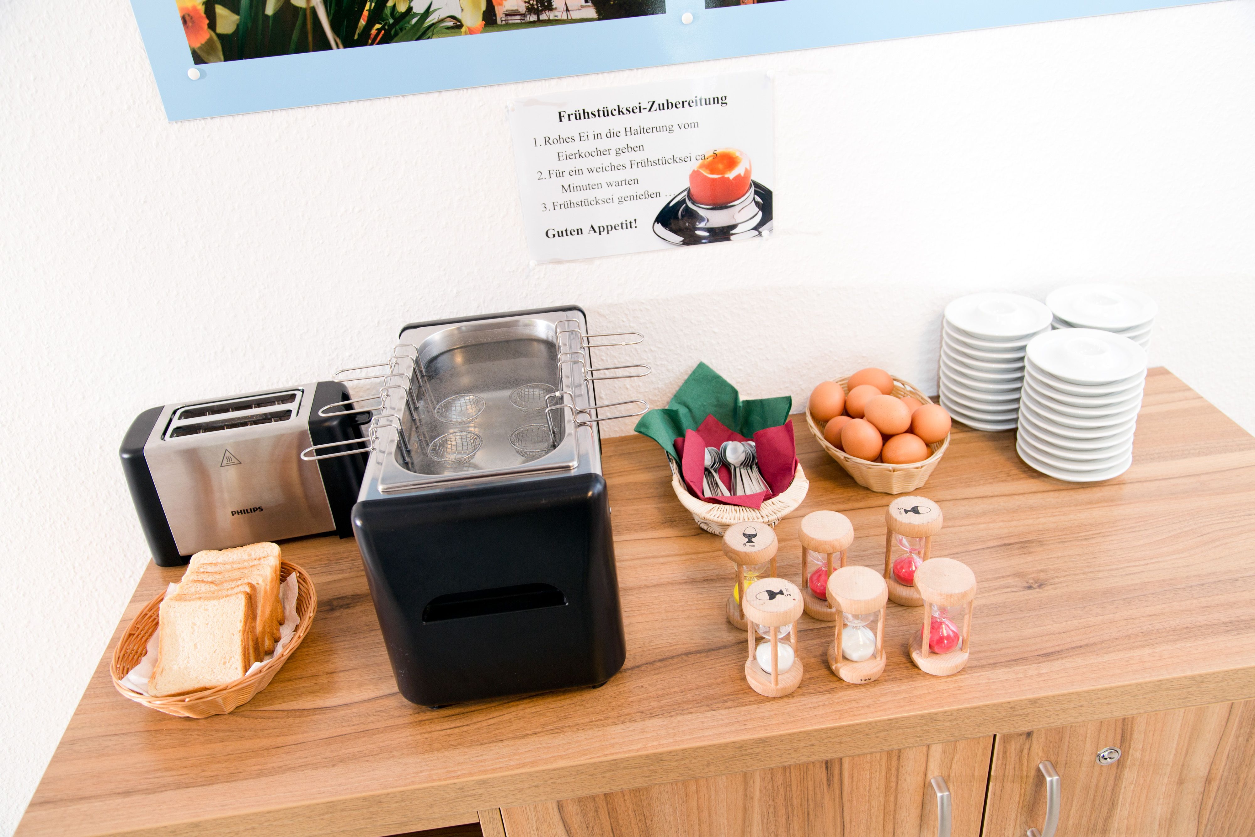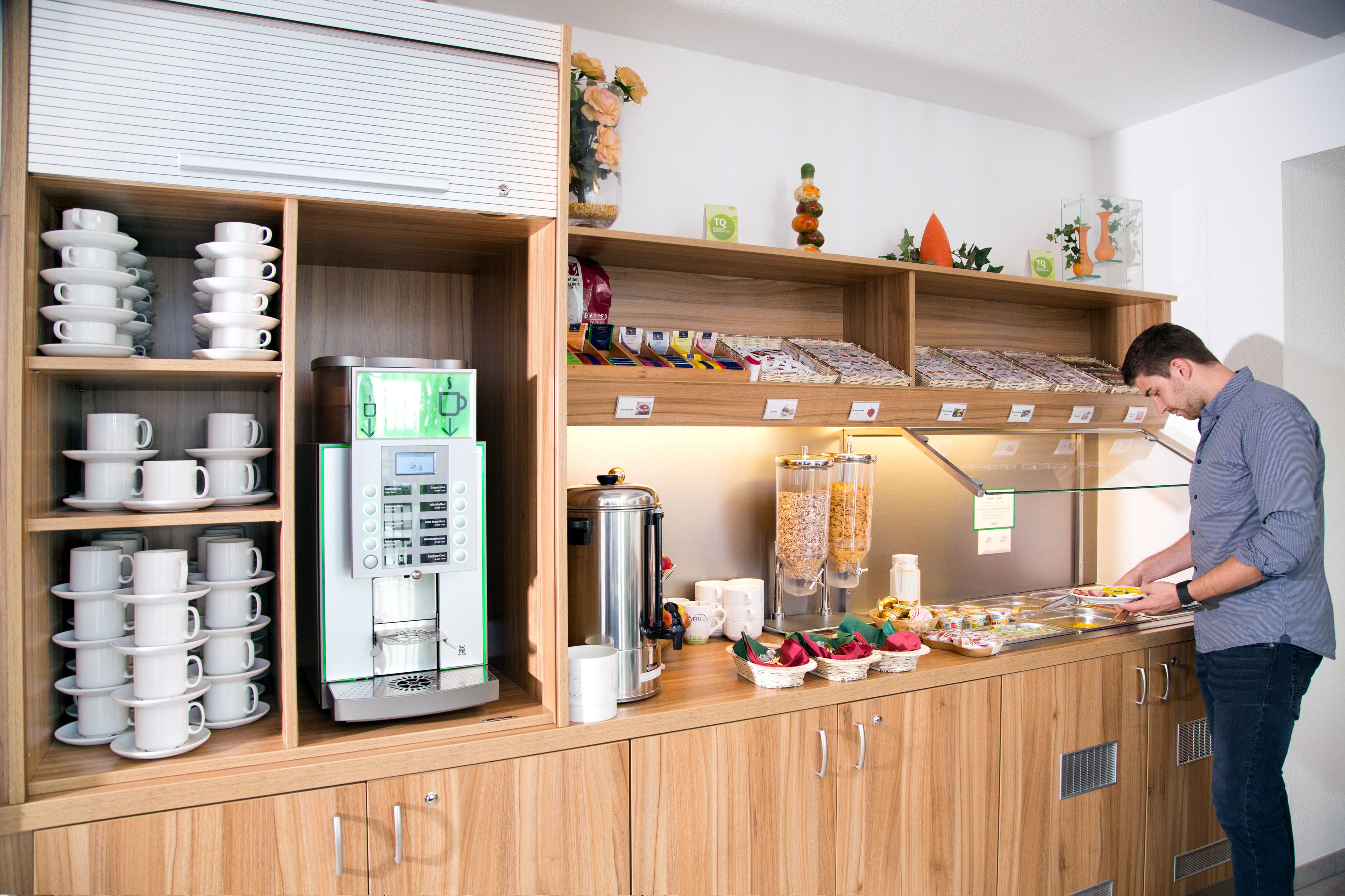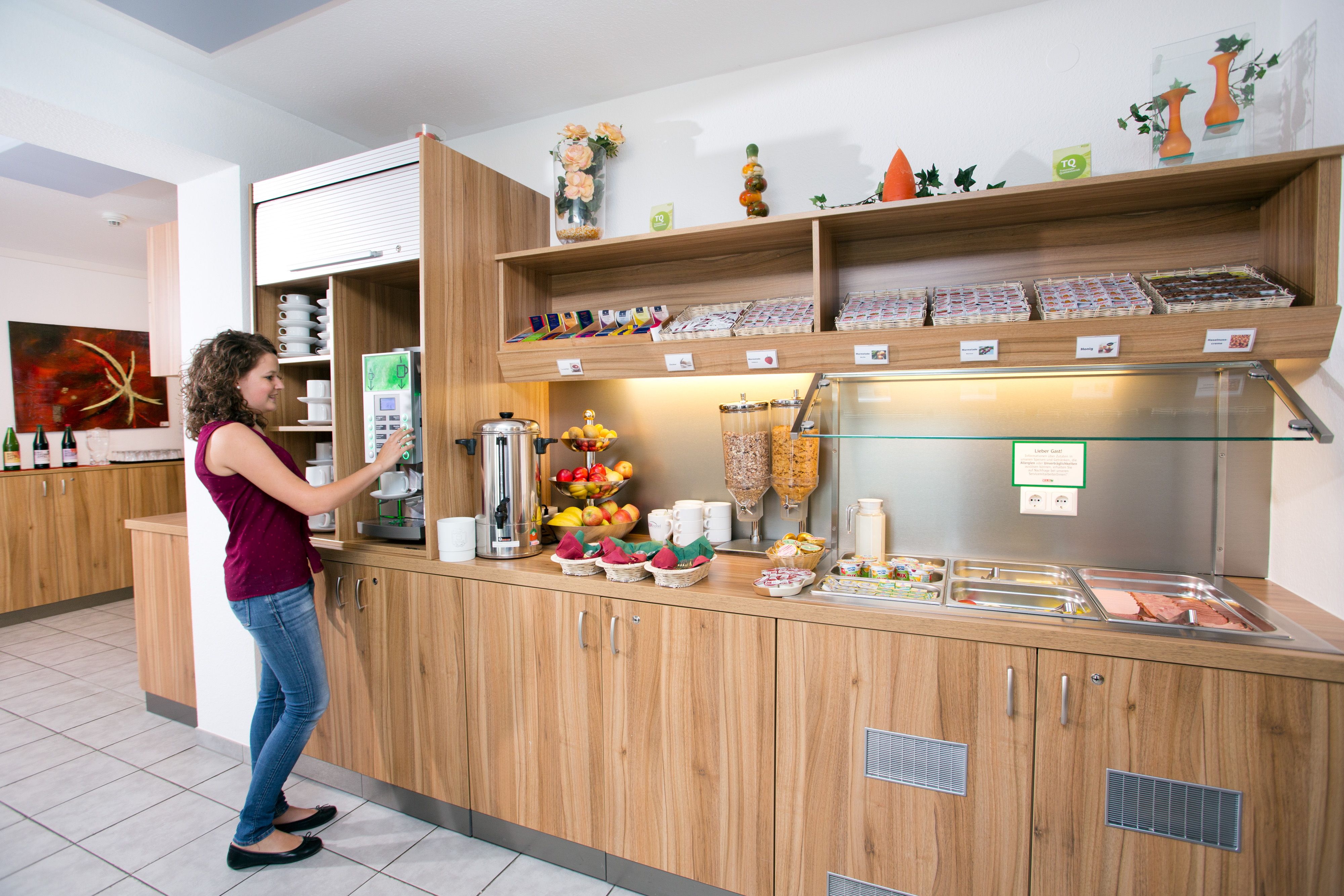 Snídaně formou bufetu s mnoha produkty z regionu (bio šťávy, vejce...) je k dispozici ve všední dny od 5.30 hodin.