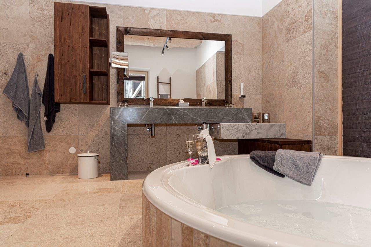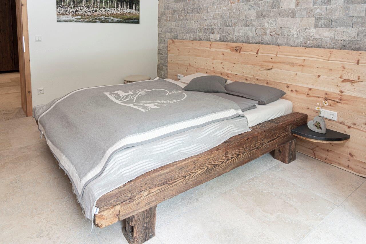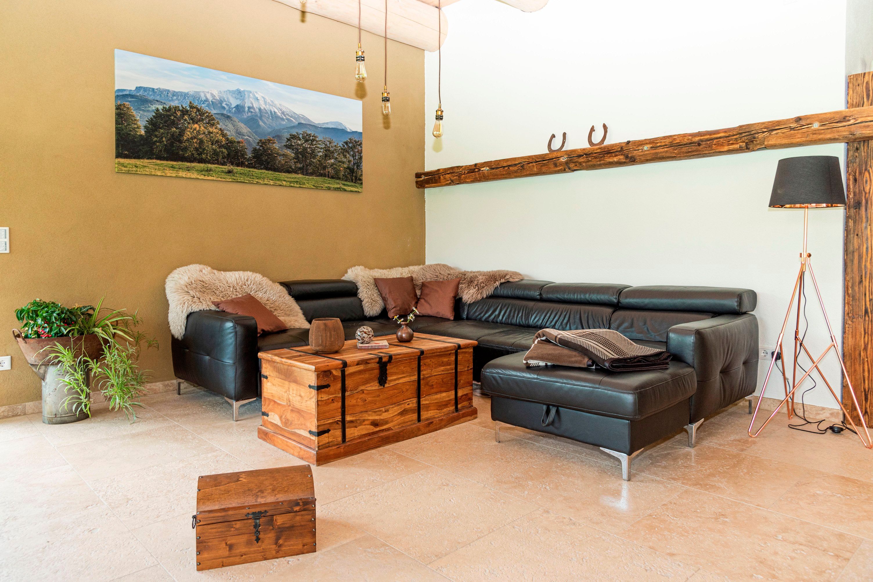Už pohled zvenčí na fasádu z přírodního kamene s panoramatickými okny od podlahy až ke stropu nebo na stylovou konstrukci ploché střechy z kulatiny dělá z této nemovitosti objekt, který obsahuje "čistou útulnost" - zcela výjimečným způsobem, a zve tak k odpočinku a dobré náladě.