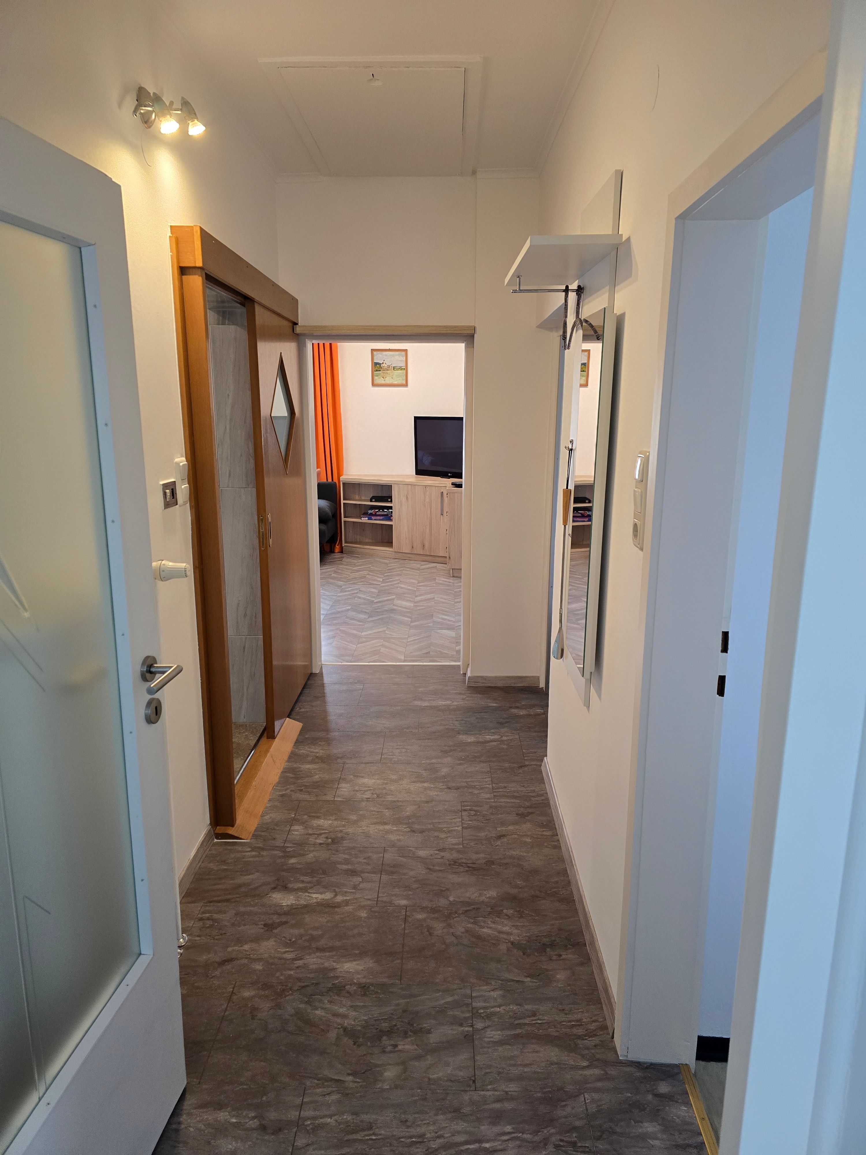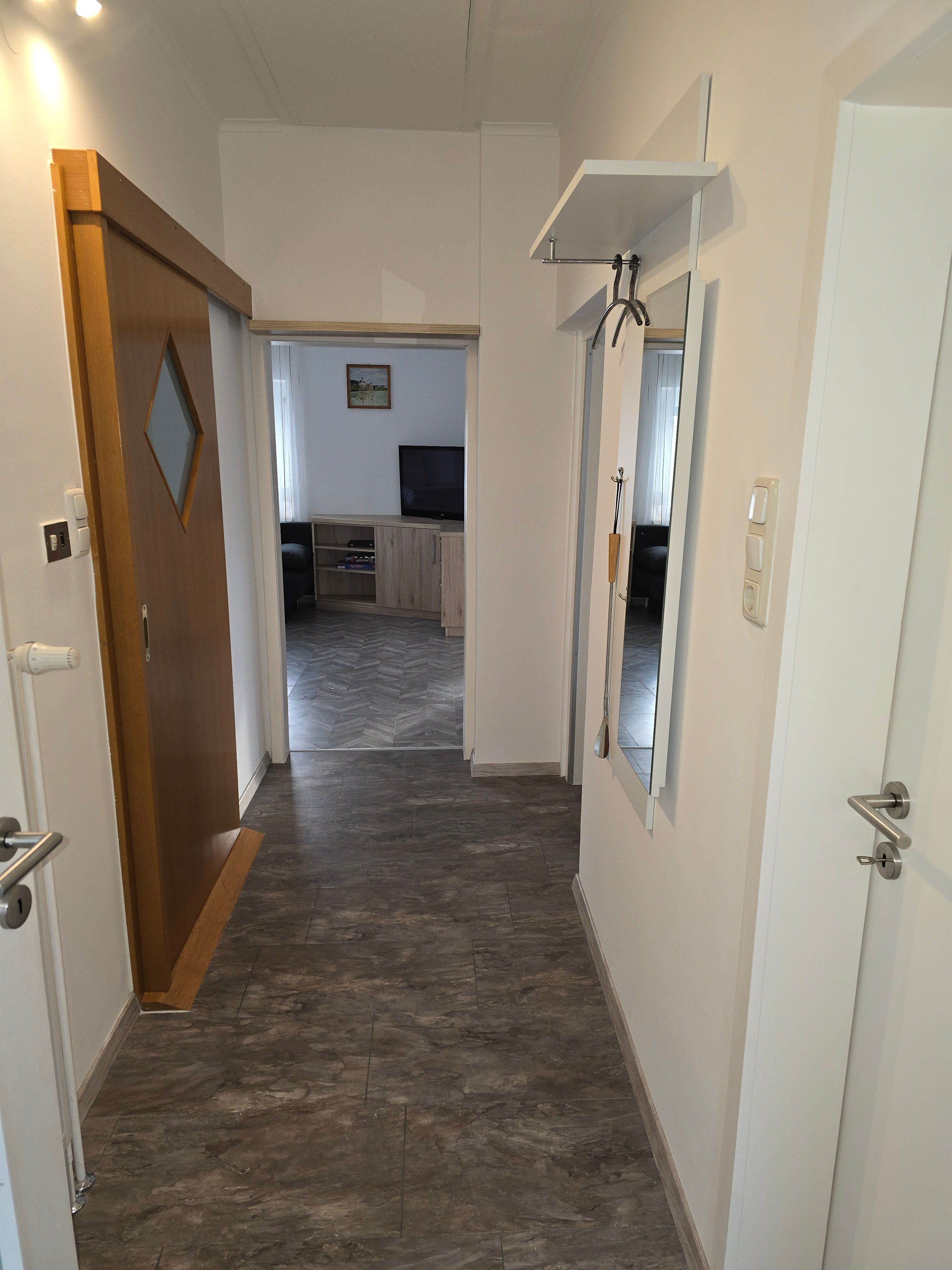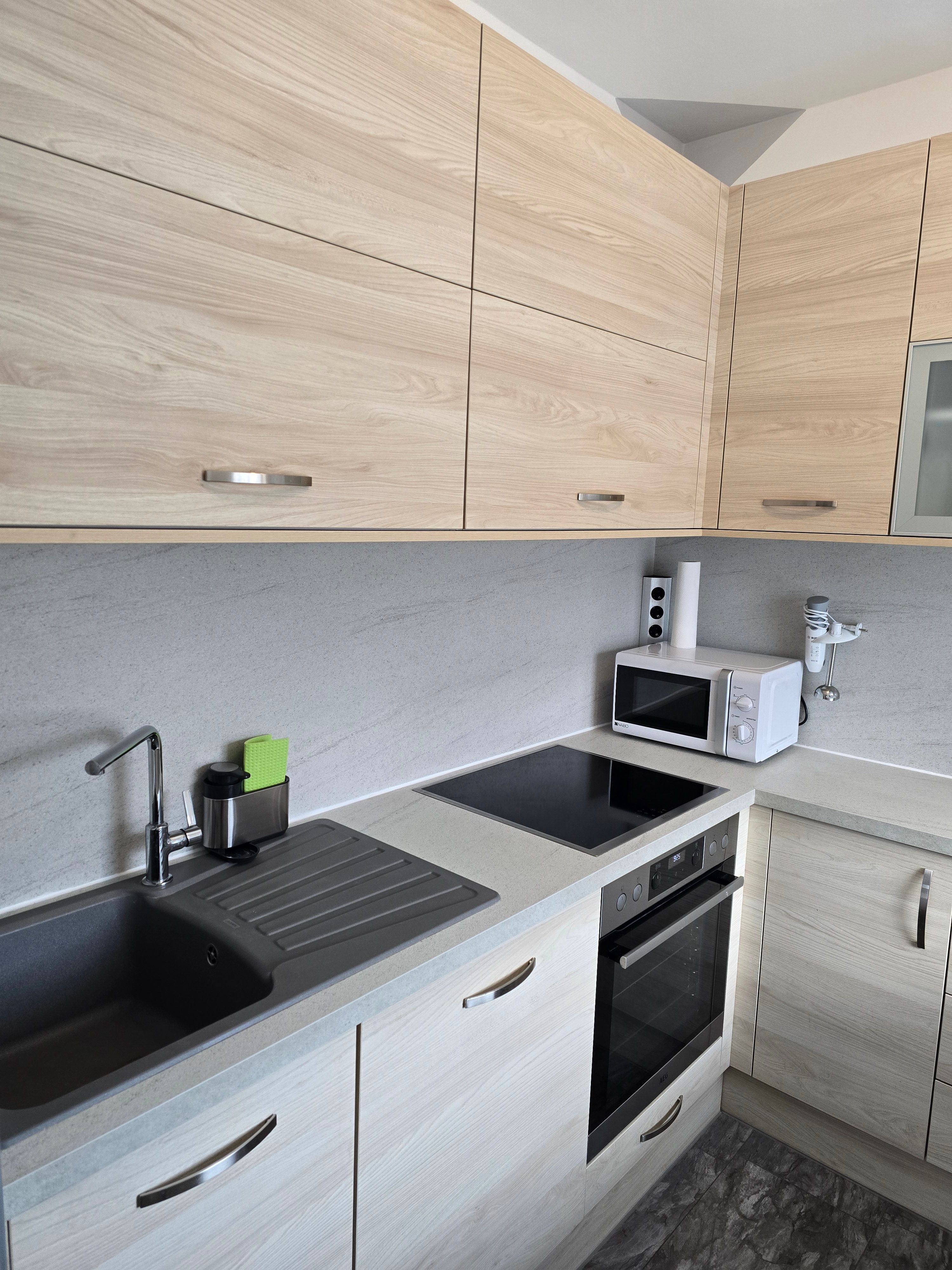 Dvě oddělené ložnice zajišťují soukromí, zatímco prostorný obývací a jídelní kout s rozkládací pohovkou nabízí dostatek místa k odpočinku. Plně vybavená kuchyň vybízí ke společnému vaření. Nabízený prostor doplňuje moderní koupelna s bezbariérovým sprchovým koutem a WC.