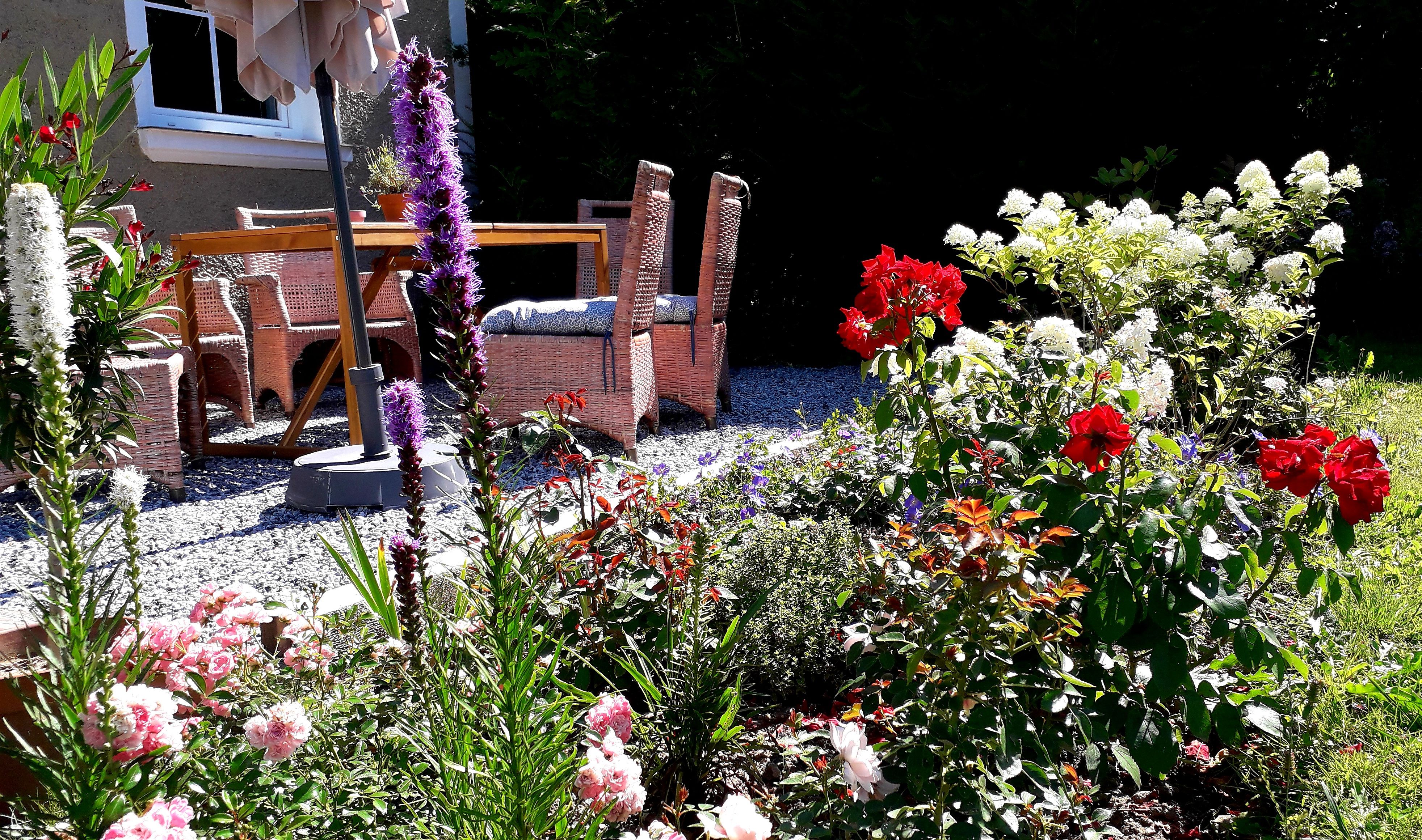 Samotný dům se pyšní velkou oplocenou zahradou sterasou orientovanou na jih, dětským hřištěm/zahrádkou s nově vysazeným sadem ( meruňky, jabloně, hrušně, třešně, švestky a ořechy) a dětským domečkem. Zahrada získala ocenění " Příroda v zahradě" od spolkové země Dolní Rakousko.